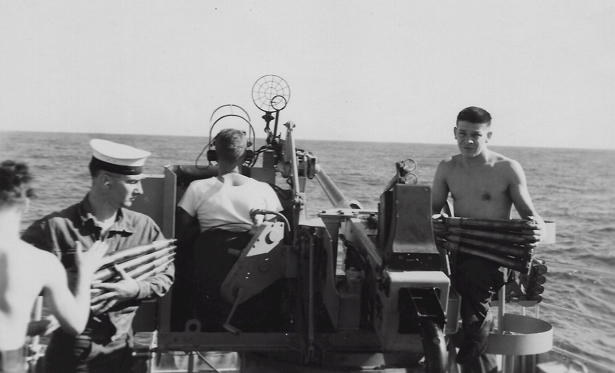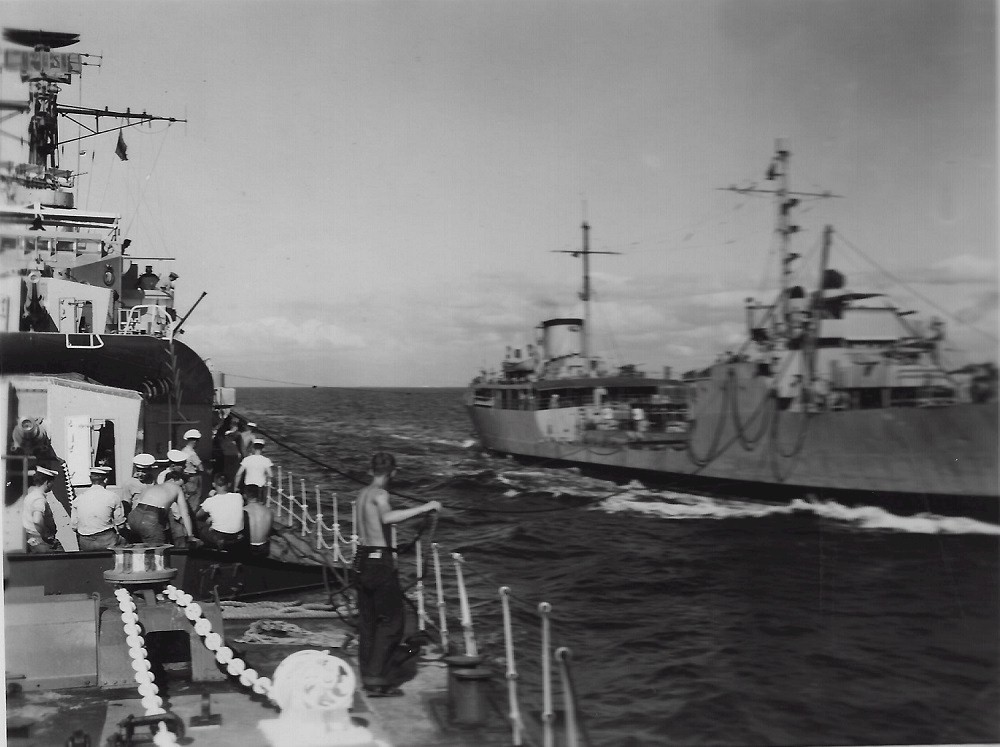 (JCT024) HMCS SIOUX 225, ship's whaler area, port side forward - 1955 (JCT025) HMCS SIOUX 225 refueling from a USN tanker - 1955 (JCT026) ABCK Tanner by 40 mm Bofor on HMCS SIOUX 225 - 1955 (JCT027 - JCT028) Sasebo, Japan, 1955