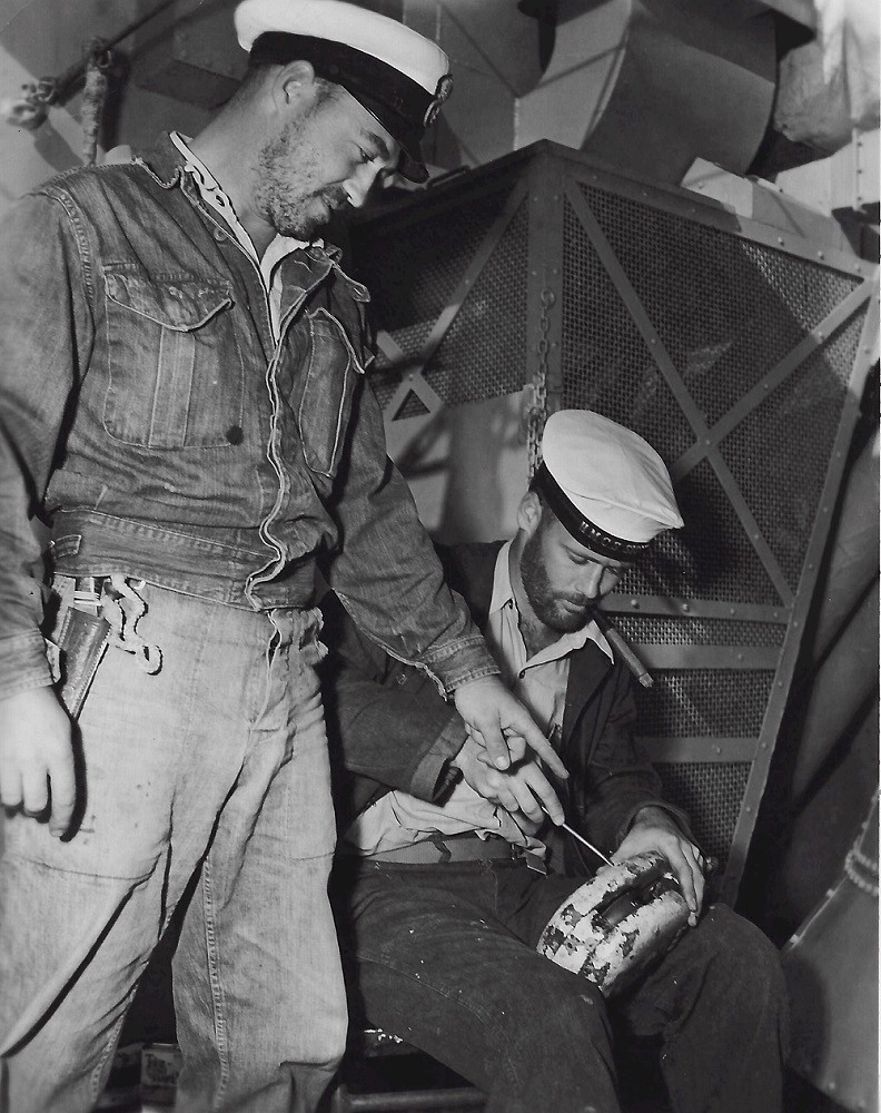 (JCT035) Al Fast, Sparker (Radioman), HMCS SIOUX 255 - 1955 (JCT036) Gun Crew Drills, HMCS SIOUX 255 - 1955 (JCT037) Two unknown sailors on HMCS SIOUX - photo labels "McFartson" (JCT038) Unknown sailor on HMCS SIOUX 225 (JCT039) "Repairing a block by Jones" - HMCS SIOUX 225