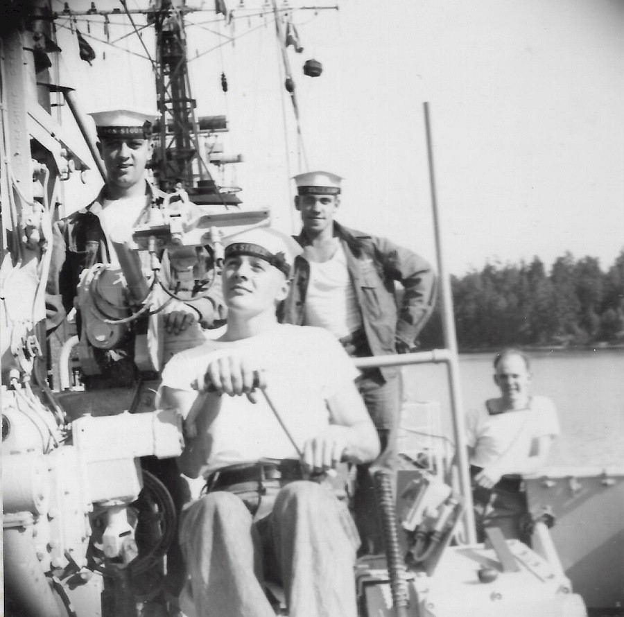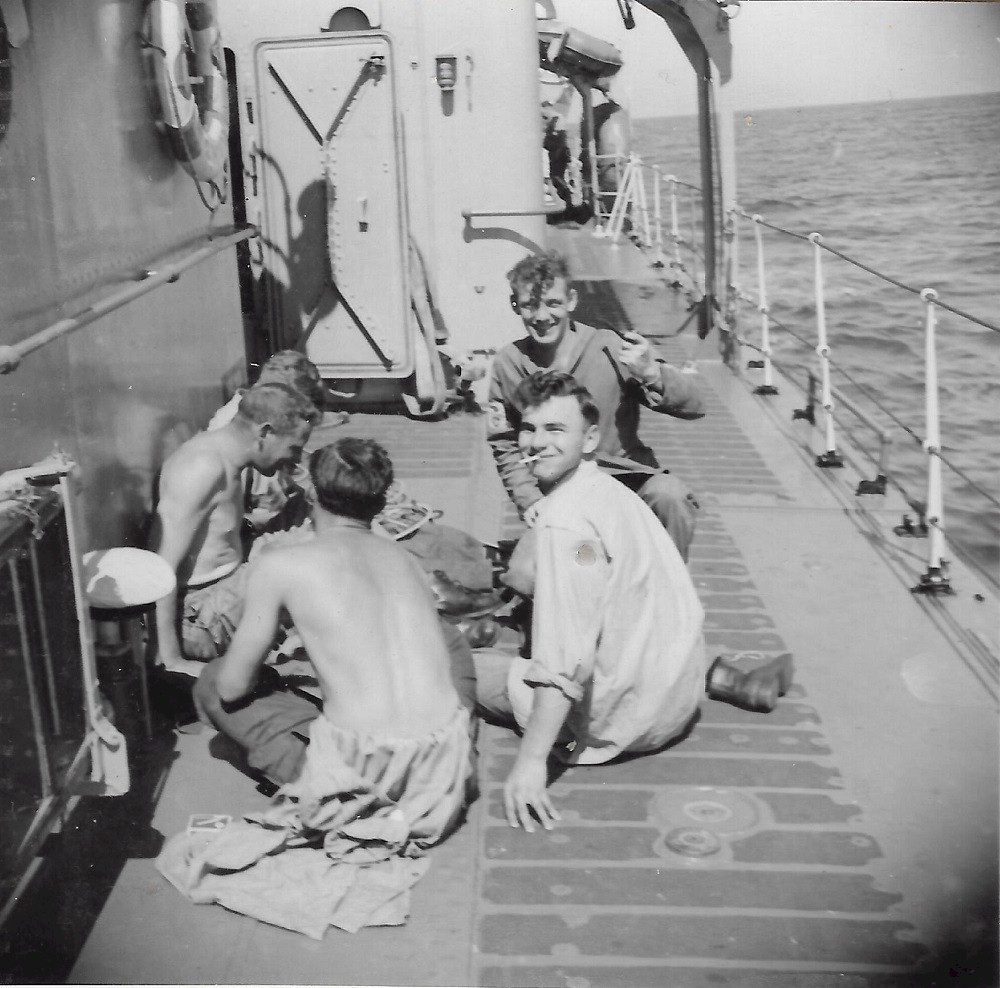 (EC101) Jim Frank, Don Ramsay, Cochrane on HMCS SIOUX circa 1952 (EC102) Ed Chadwick on HMCS SIOUX circa 1952 (EC103) Don Ramsay on HMCS SIOUX circa 1952 (EC104) Jim Frank on HMCS SIOUX circa 1952 (EC105) Ed Chadwick on HMCS SIOUX, after division circa 1952