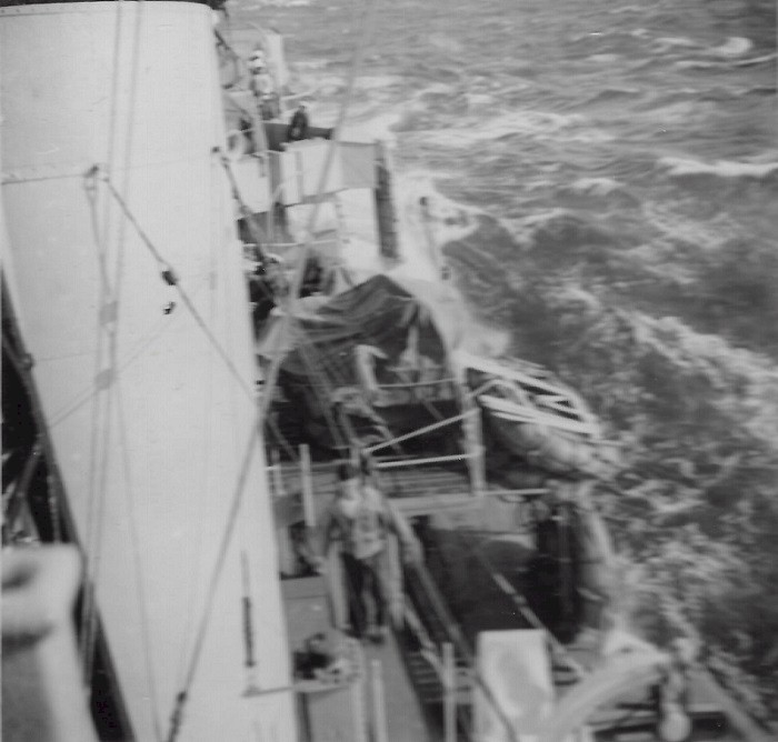 (EC69) On Patrol 1951 - HMCS ATHABASKAN transferring mail to HMCS CAYUGA 218 (EC70) On Patrol, Jan 1951 - South Korean refugees escaping down the coast (EC71) On Patrol 1951 - Interrogating Korean Fishermen (EC72) On Patrol 1951 - Korean Fishermen on their way (EC73) HMCS ATHABASKAN Fo'c's'le Party