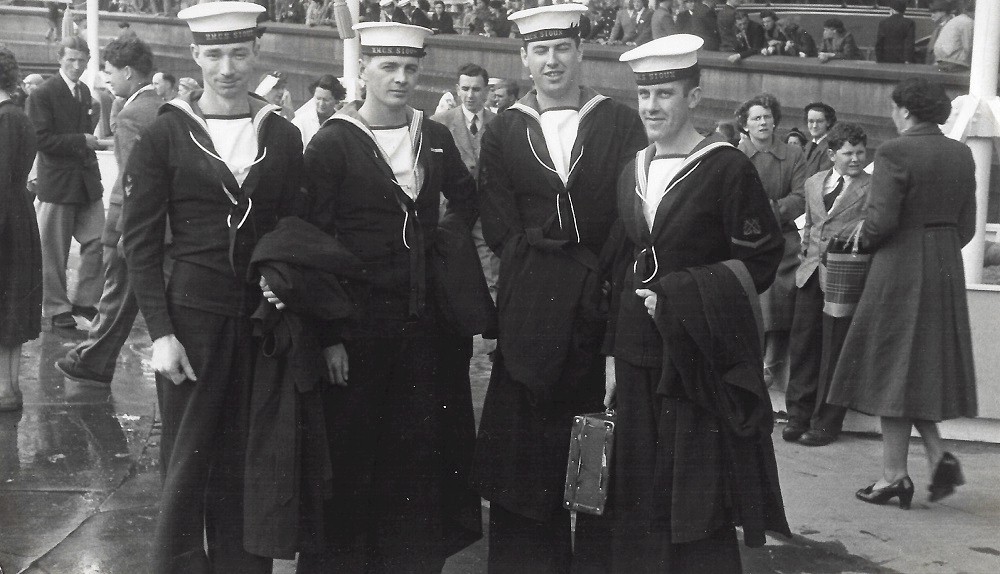 (EC116) Coronation Cruise 1953 - Hands to Bathe (EC117) Coronation Cruise 1953 - Bob Hawley, Ed, Keith Strycker and Vic West at Trafalgar Square, 30 May 1953 (EC118) Coronation Cruise 1953 - Having a pint at the Amersham Arms, New Cross Rd, London (EC119) Ashore in Long Beach, Calif., HMCS SIOUX, 1953