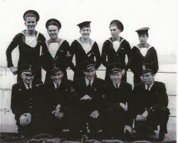(JR29) front left John Johnson - remainder unknown on HMCS WASKESIU K330 (JR30) Unknown sailors on HMCS WASKESIU K330 * These photos are also found in the Ship's Company Photo page for HMCS WASKESIU