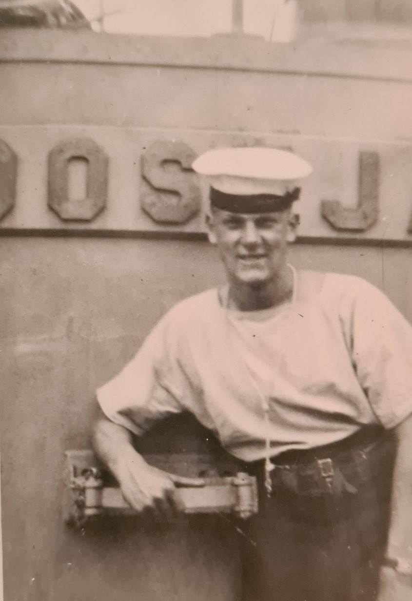 (JC01) Article from the Winnipeg Evening Tribune on the death of Sig James Condie (JRC002) Sig James Condie on duty as Quartermaster on HMCS MOOSEJAW // From the collection of Dennis Sullivan, RCNVR (JC02) Documents from the Service File of James Condie
