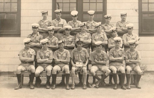 New Entry Recruits at HMCS QUEEN CHARLOTTE - photo undated Lowell Barlow - front row, 2Nd from left