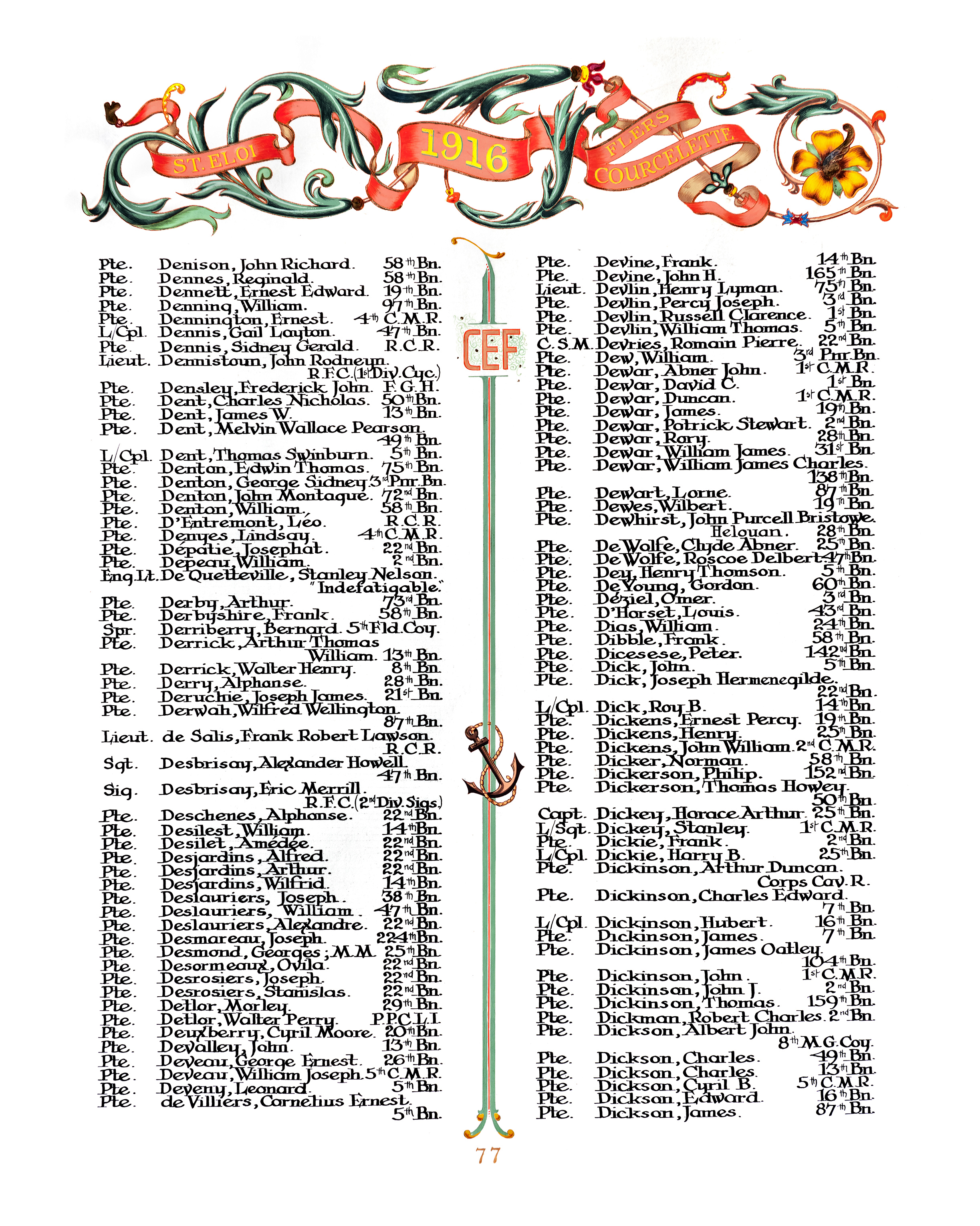 Engineer Lieutenant Stanley N. De Quetteville is Commemorated on Page 77 of the First World War Book of Remembrance. He is notable as the only confirmed Canadian casualty of the Battle of Jutland and is commemorated on the Halifax Memorial.