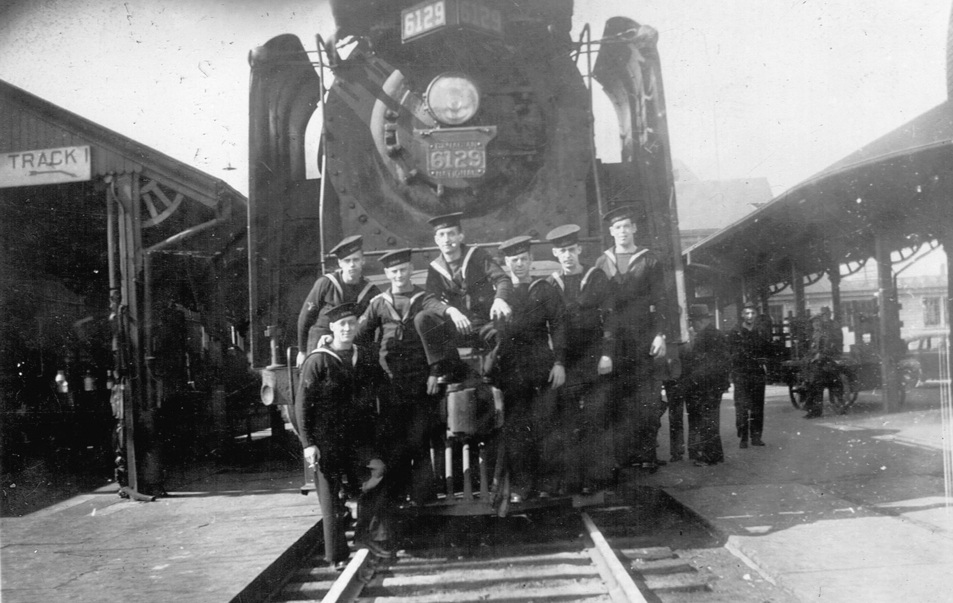 (RSR071 - RSR0174) Unidentified sailors posing for photos - location unknown - though likely the train station at Moncton, NB