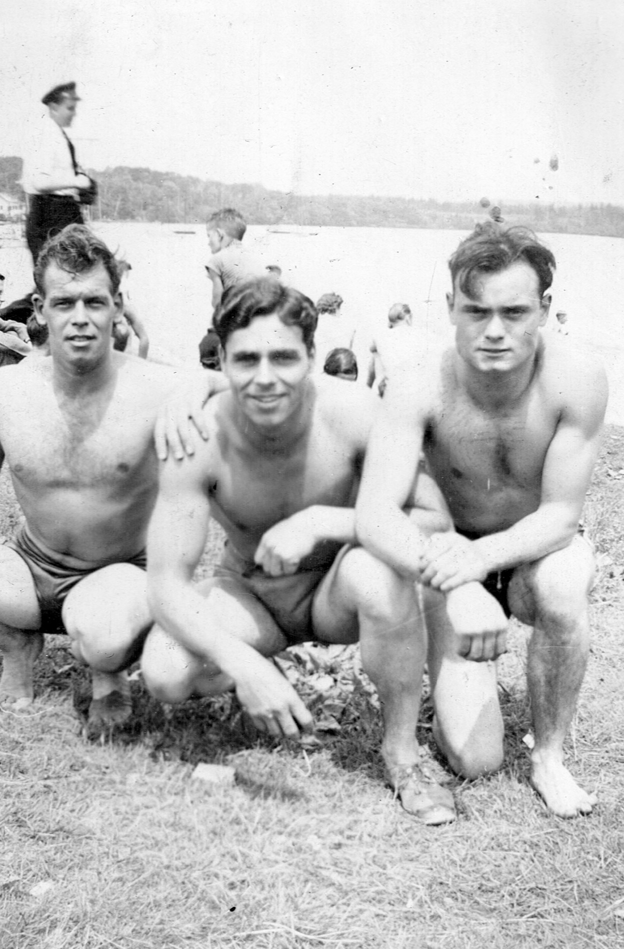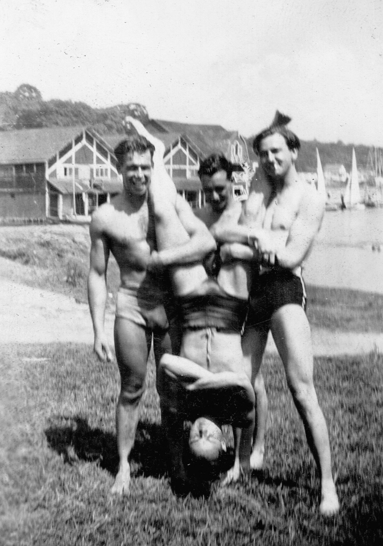 (RSR053 - RSR054) Unidentified sailors swimming at Lake Banook, Nova Scotia and (RSR055) taking part in antics on the lock at the entrance to the Shubenacadie Canal on Lake Banook