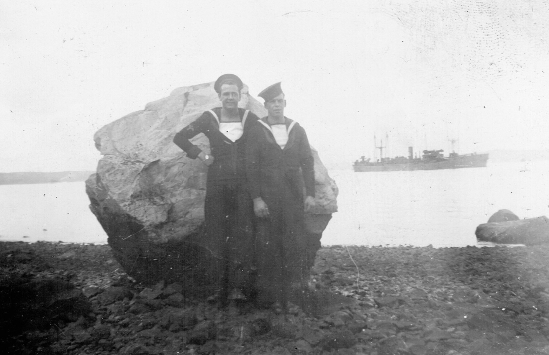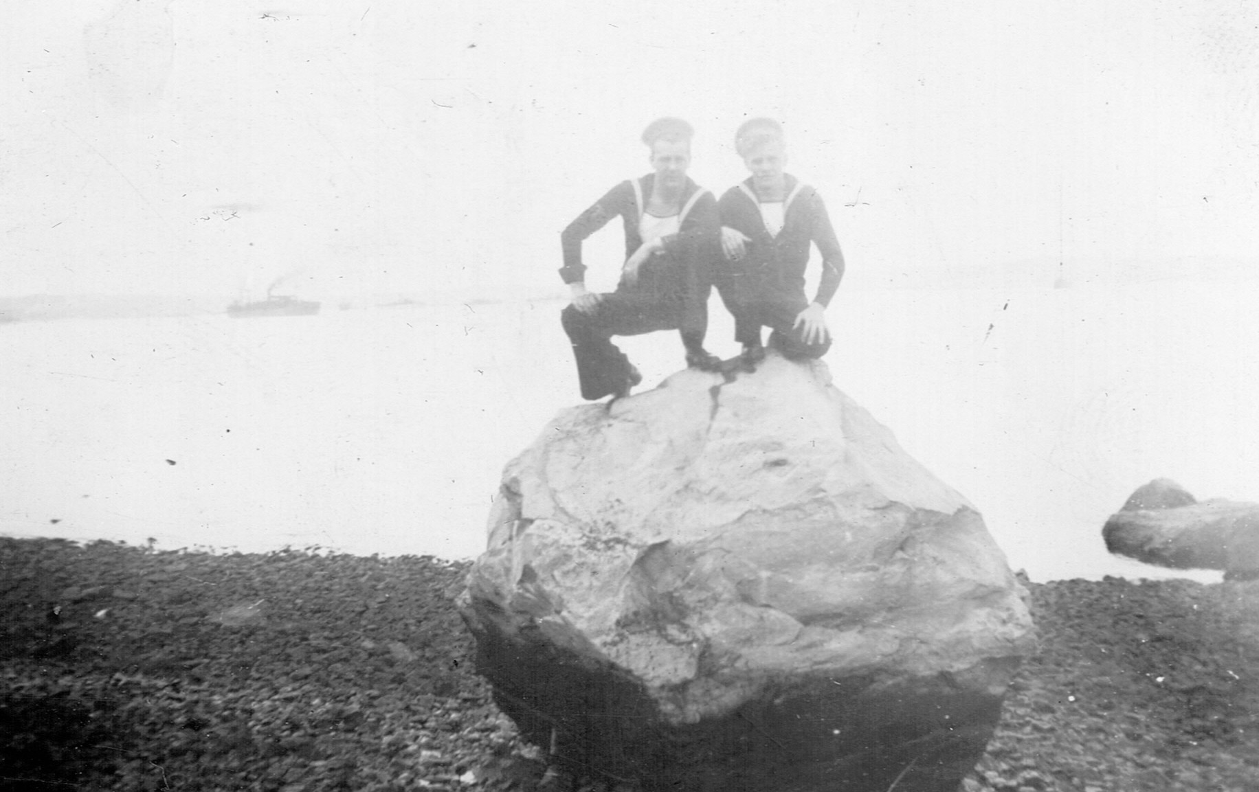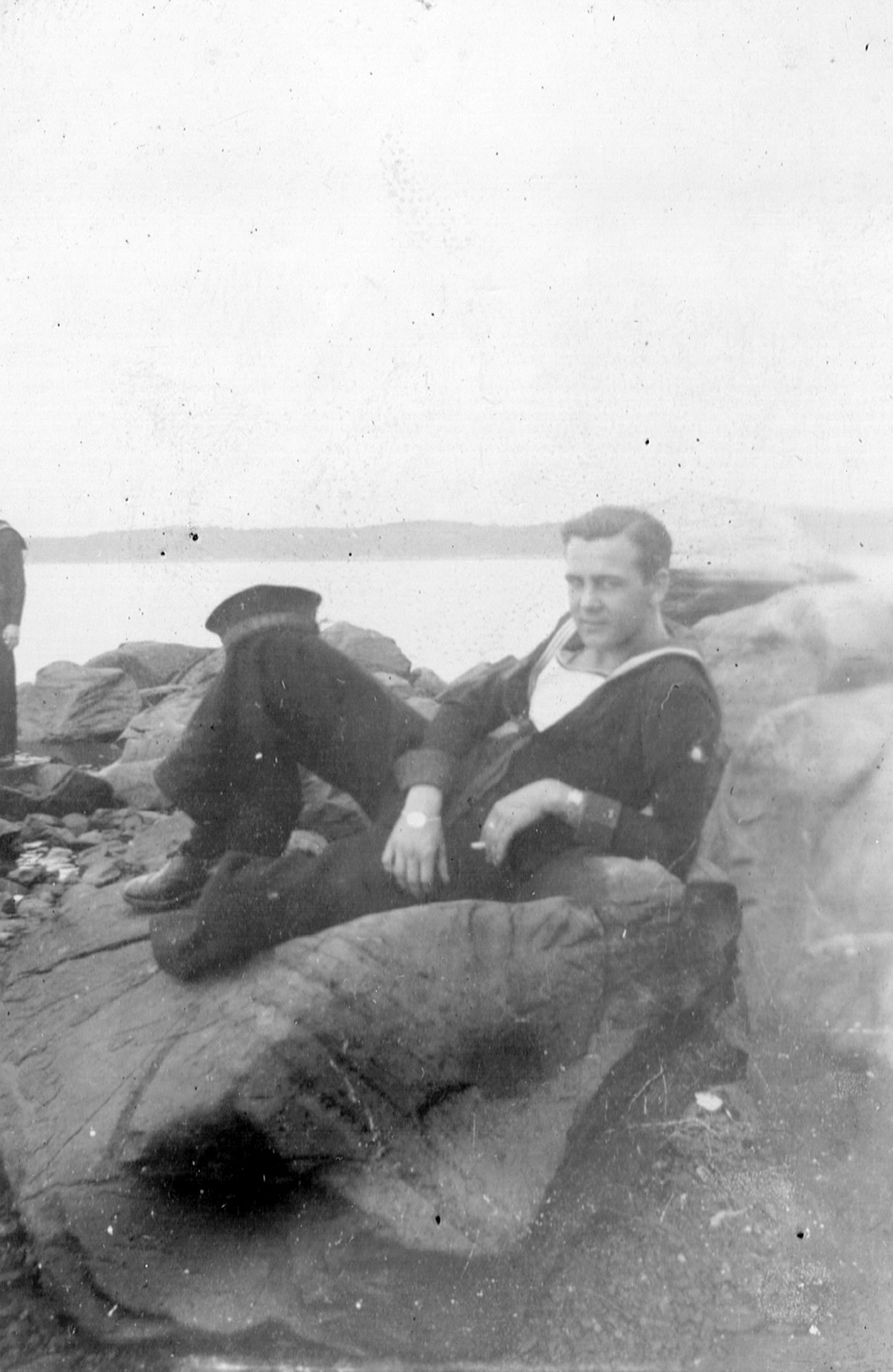 (RSR033 - RSR037) Unidentified sailors relaxing on the rocks at Point Pleasant Park, Halifax, NS