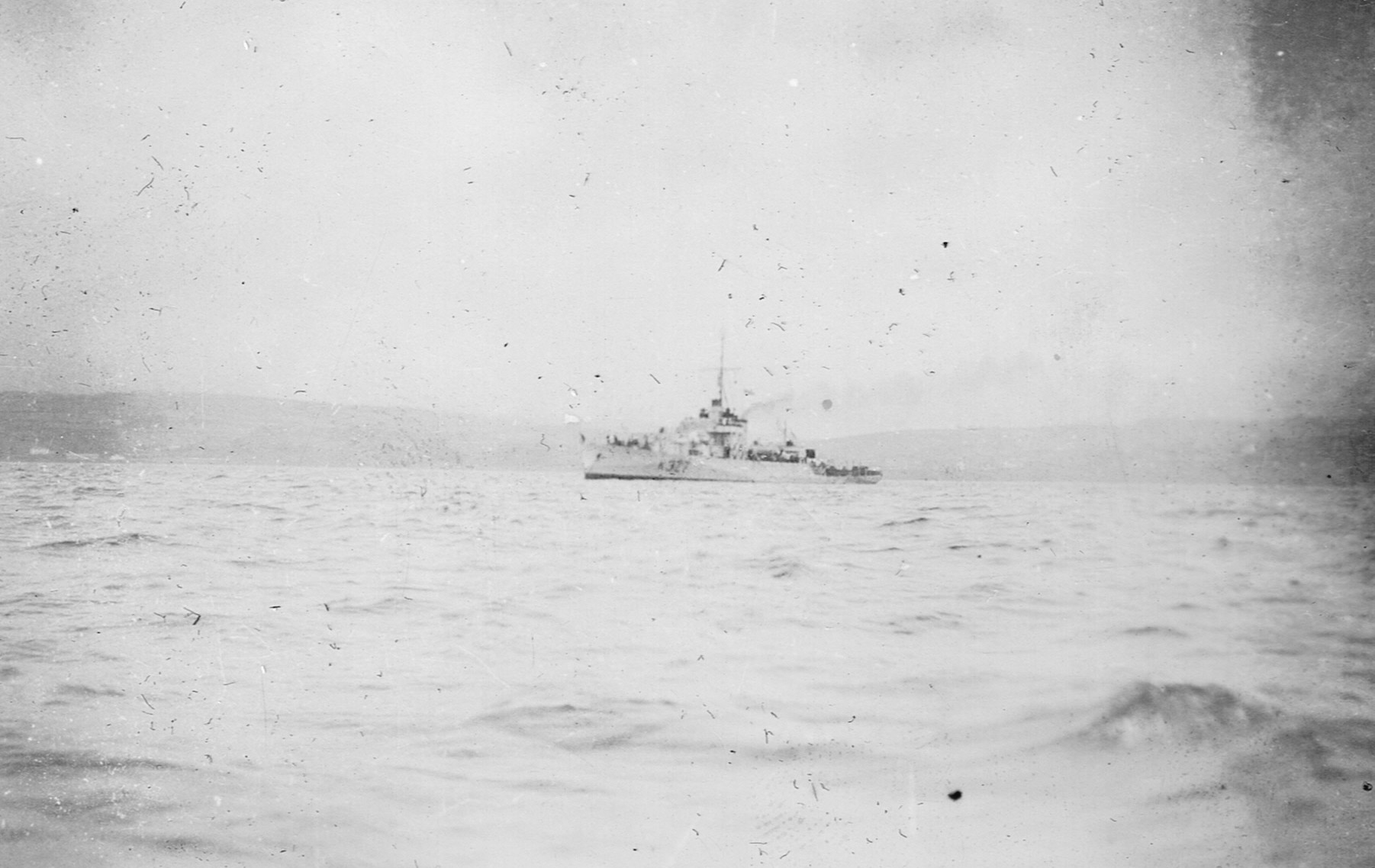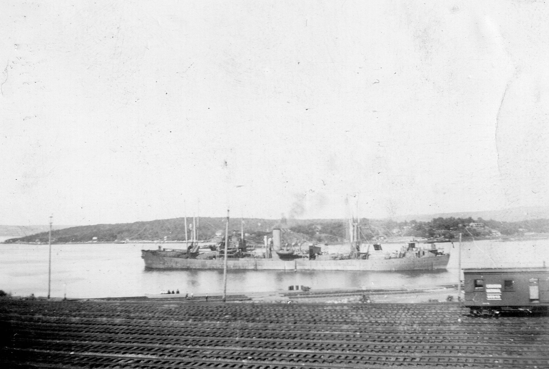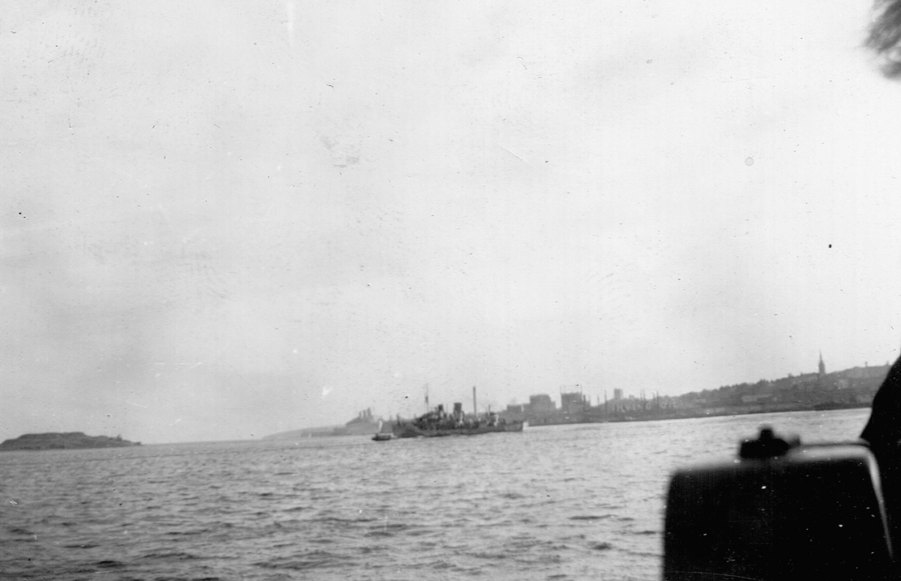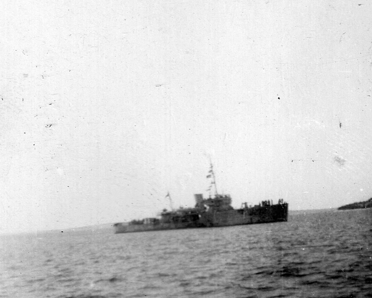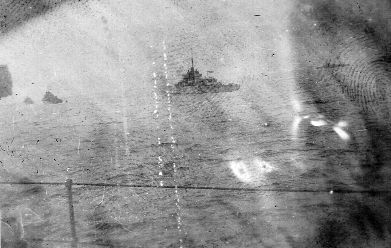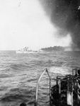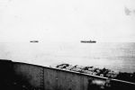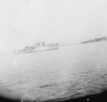 (RSR121) Unknown frigates (RSR122) Escort group laying a smoke screen. HMCS MEON in the foreground also making smoke. (RSR123) Merchant ship in unknown port (RSR124) Unknown corvette heading out to sea from Halifax. Georges Island off the to left of the photo (RSR125) Fishing schooner in an unknown port