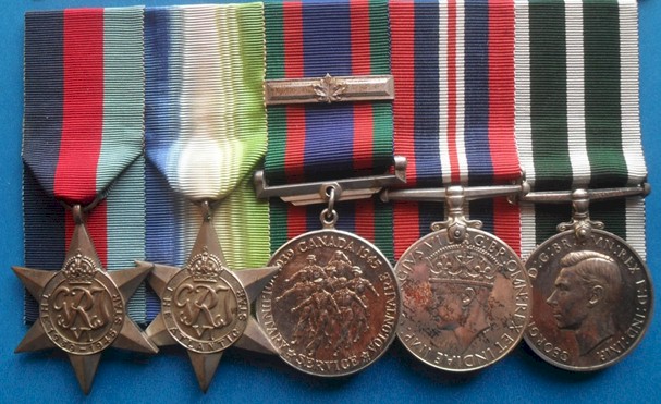 Awards and Decorations: 1939-45 Star, Atlantic Star, CVSM & Clasp, War Medal 1939-45, LS&GC RCN(R) Note: Only 19 RCN(R) Long Service and Good Conduct medals were issued.