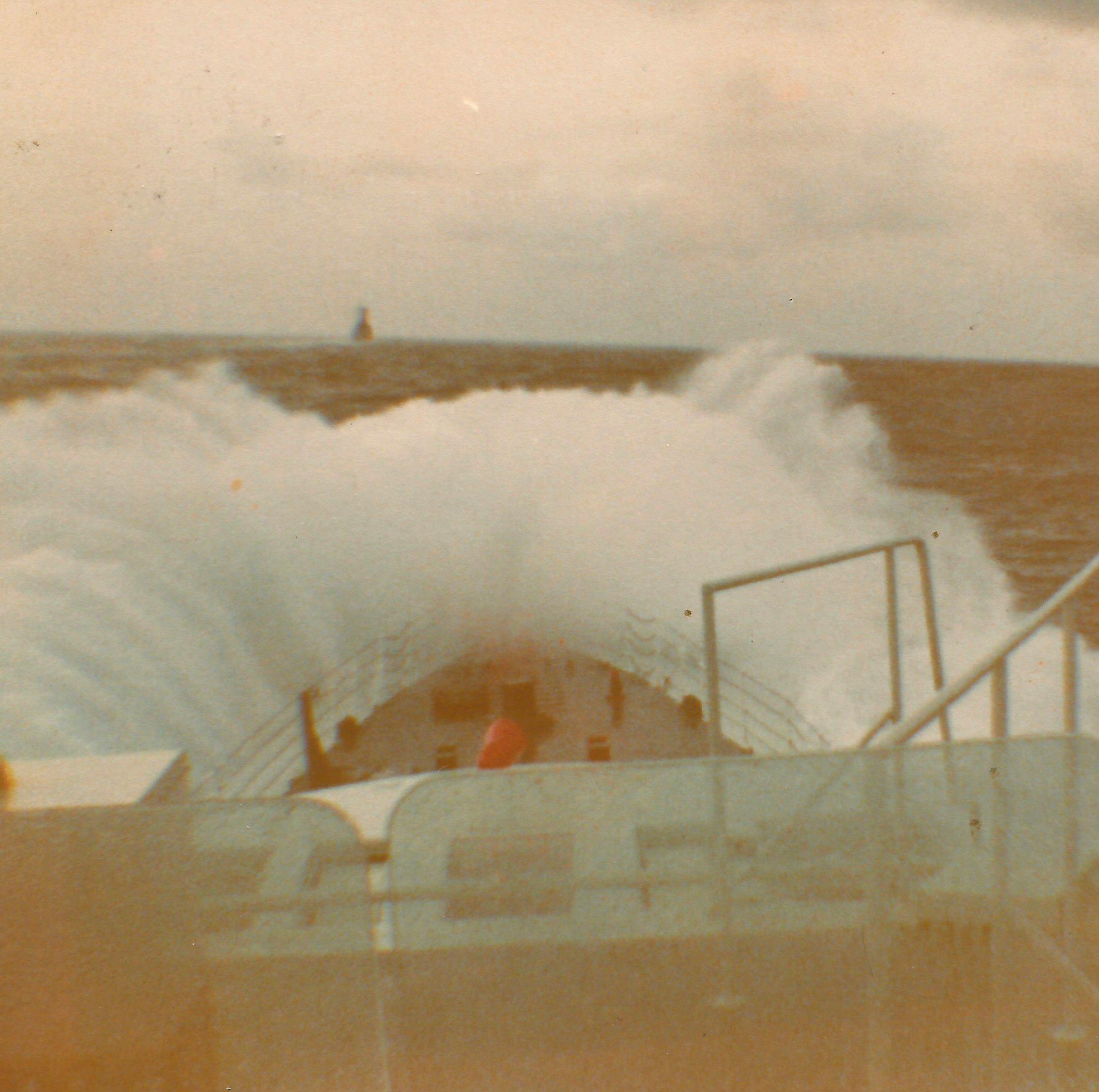 (JWB005) The bullring of HMCS Ottawa 229 - "Just a little pic I took of our Bullring. I got three days Birds for this because I was almost washed overboard trying to get it. Pic's JWB006 & JWB007) are where they said I had to be to take pics like that. I think 3 days Birds was worth it!!!" © Bill Hart 1984