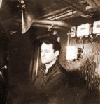 (CRJ015) A special occasion in the mess deck on HMCS CHAMBLY K116 (CRJ016 - CRJ017) Unknown rating on HMCS CHAMBLY K116 standing before an officer and what appears to be 2 Petty Officers. Webmaster's note: It is believed that this is the CO as a 2 badge AB and he has changed places with the youngest sailor on ship for Christmas Day. The crew in the background seems to be having way too much fun for this to be a normal occasion for the sailor to be standing in front of a ship's officers for either request men or defaulters. (CRJ018) Unknown "officer" on the bridge of HMCS CHAMBLY K116. Webmaster's note: it is believed that this photo is part of the the 3 preceding photos as the officer's uniform is ill fitting and possibly is a rating who exchanged places with another ship's officer or is perhaps the youngest sailor who changed places the Commanding Officer on Christmas Day.