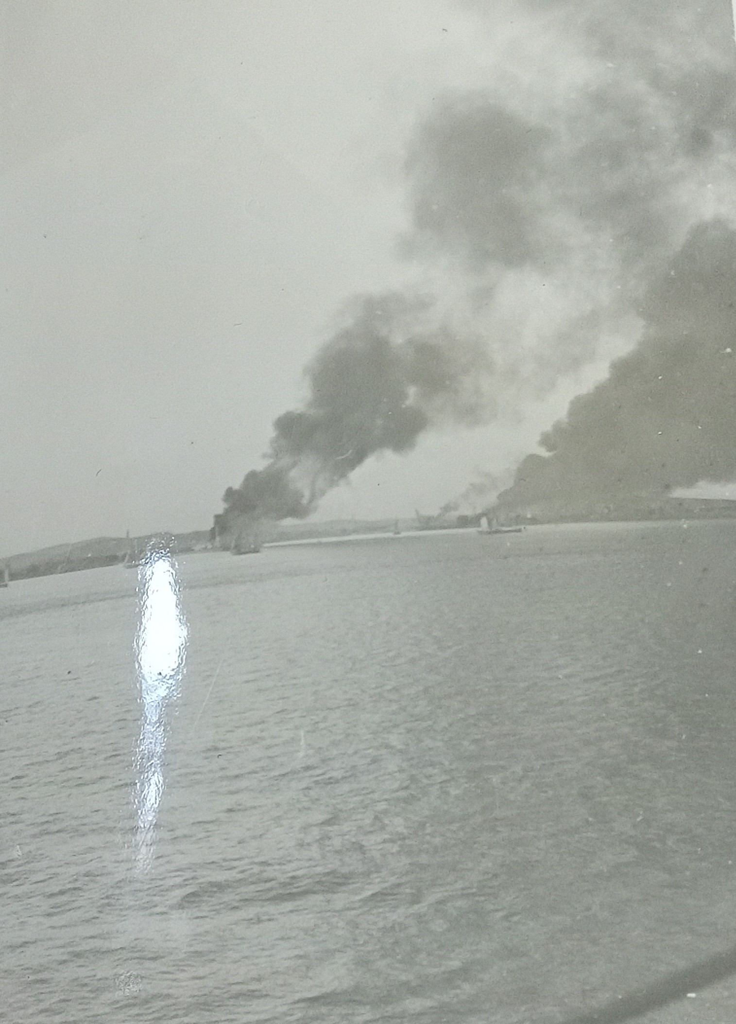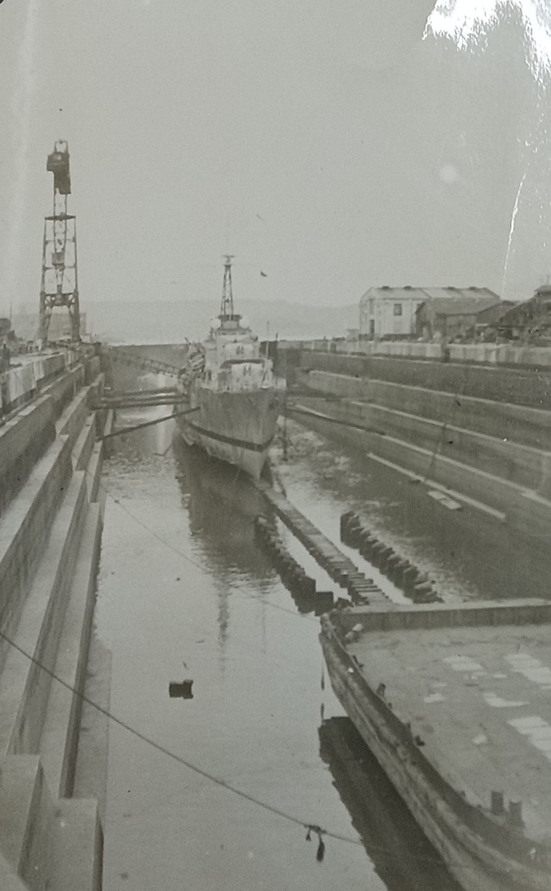 (BJB003) South Korean Refugees (BJB004) Results of bombardment at Chinnampo on 5/6 Dec 1950. Evacuation started early in morning. (BJB005-BJB006) HMCS CAYUGA in drydock at Sasebo (BJB007) HMS COCKADE