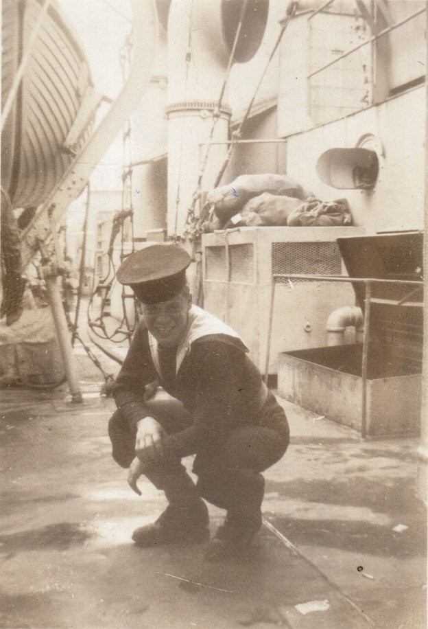 (CGWJ005) HMCS TRILLIUM K172 in the North Atlantic covered in ice (CGWJ006) Sailors off HMCS TRILLIUM K172 in Bermuda during Work-ups- Aug 1944. Walt Johnson on the far ship. (CGWJ007) Les Lowe on HMCS TRILLIUM K172. Note that TRILLIUM's gunshield art is now on the face of the bridge. (CGWJ008) Walt Johnson on HMCS TRILLIUM K172 Courtesy of Beverley Desmarais