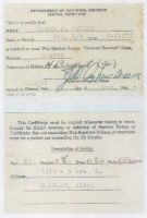 Ships served in: HMCS TECUMSEH - Enlisted 01 Jul 1942 * Commenced Active Service 01 Jul 1942 as a Stoker 2nd Class, RCNVR HMCS YORK - Drafted to YORK 04 Jul 1942 HMCS CORNWALLIS - Drafted to CORNWALLIS 08 Sep 1942 HMCS STADACONA - Drafted to STADACONA 06 Nov 1942 HMS ANTICOSTI - Drafted to ANTICOSTI 08 Mar 1943 HMCS STADACONA - Drafted to STADACONA 08 Apr 1943 HMCS CALGARY - Drafted to CALGARY 11 May 1943 HMCS STADACONA - Drafted to STADACONA 26 May 1943 HMCS SHELBURNE - Drafted to SHELBURNE 23 Jun 1943 * Rated Acting Stoker 1st Class, RCNVR 01 Jul 1943 HMCS STADACONA - Drafted to STADACONA 13 Apr 1944 HMCS HOCHELAGA II - Drafted to HOCHELAGA II 30 Apr 1944 HMCS CHALEUR II - Drafted to CHALEUR II 24 May 1944 HMCS THETFORD MINES - Drafted to THETFORD MINES 25 May 1944 HMCS CORNWALLIS - Drafted to CORNWALLIS 12 Jun 1945 HMCS NADEN - Drafted to NADEN 14 Sep 1945 HMCS TECUMSEH - Drafted to TECUMSEH 25 Sep 1945 * Demobilized 21 Nov 1945