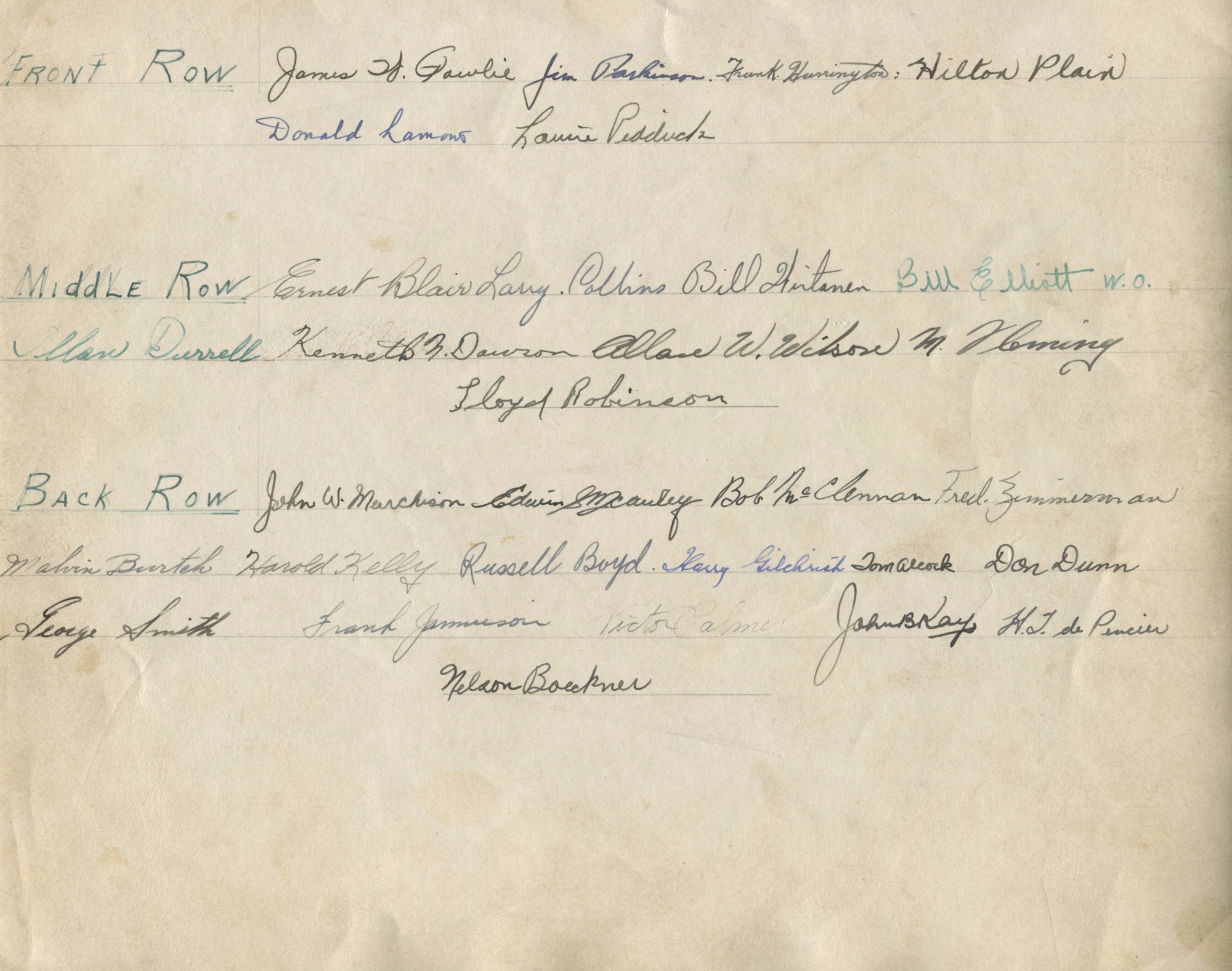 Engine Room Artificers, E.R.A. Class 70, May 1943 Click on the above photo to view a larger image (1) Gawbie, James H (2) Parkinson, Jim (3) Hurrington, Frank (4) Plain, Hilton (5) Lamont, Donald (6) Pedduck, Laurie (7) Blair, Ernest (8) Collins, Larry (9) Hirtanen, Bill (10) Elliott, Bill, WO (11) Durrell, Allan (12) Dawson, Kenneth N. (13) Wilson, Allan W. (14) Fleming, M. (15) Robinson, Lloyd (16) Murchison, John W. (17) Mcauley, Edwin (18) McClennan, Bob (19) Zimmerman, Fred (20) Burteh, Malvin (21) Kelly, Harold (22) Boyd, Russell (23) Alcock, Tom (24) Gilchrist, Harry (25) Dunn, Don (26) Smith, George (27) Jamieson, Frank (28) Palmer, Victor (29) Kay, John B. (30) de Pencier, H.T. (31) Boeckner, Nelson Click here to see the names written on the back of the photo From the collection of Kenneth Dawson Courtesy of Randy Dawson