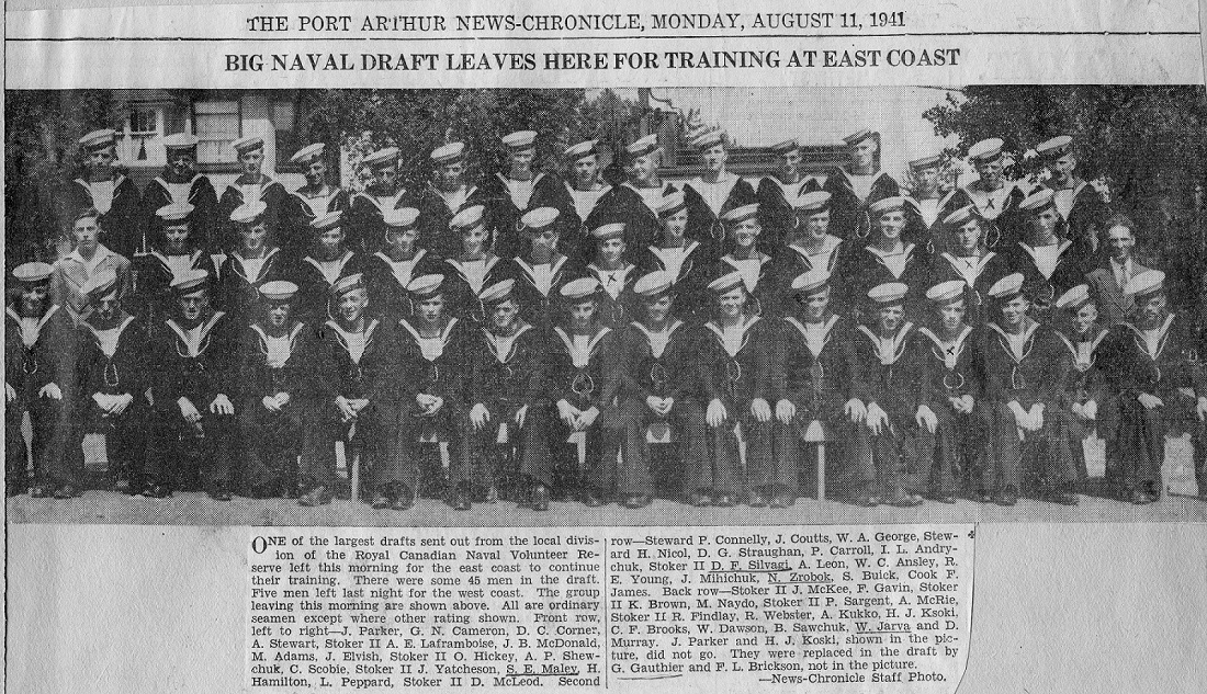 RCNVR DIVISION PORT ARTHUR First Draft, Port Arthur, ON, 1939 Click on the above photo to view a larger image (11) Donald V. Hynes From the collection of Donald V. Dynes Courtesy of Bill Dynes