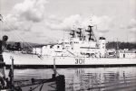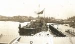 (TS41 - TS42) HMCS ANTIGONISH pulls away from the jetty in Esquimalt - 1948 From the collection of Thomas Smith, C2ET, RCN