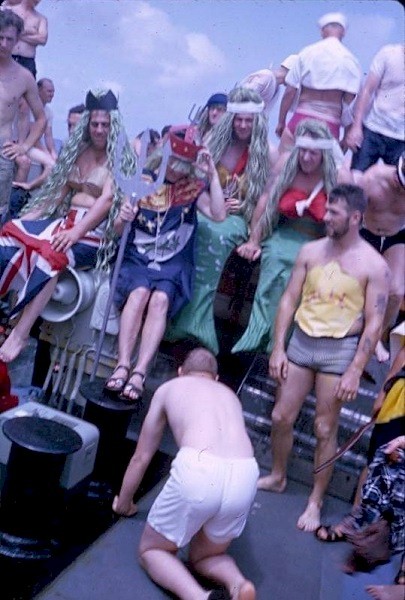 (BT043 - BT045) Crossing the Line ceremony on HMCS ANTIGONISH 301 (BT046) HMCS ANTIGONISH 301 sailors ashore in Panama (BT047) "Ready for a diving test". Bob Theriault on HMCS ANTIGONISH 301