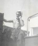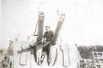 (BT033) Bob Theriault on the bridge of HMCS ANTIGONISH 301 (BT034) "Dick gave the CO the day off" - Dick in the CO's chair on the bridge of HMCS ANTIGONISH 301 (BT035) Unidentified Sig on HMCS ANTIGONISH 301 (BT036) Unidentified rating on 4-inch gun on HMCS ANTIGONISH K301 (BT037) Bob Theriault on 4-inch gun on HMCS ANTIGONISH K301 - 1951