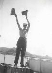 (BT038) The bunting tossers (Signalmen) on HMCS ANTIGONISH K301 (BT039) Jerry Sinclair (Suma Champ) painting the bridge on HMCS ANTIGONISH 301 (BT040) Bob Theriault on the bridge of HMCS ANTIGONISH 301 (BT041) Unidentified rating on the bridge of HMCS ANTIGONISH 301 (BT042) Bob Theriault by the flag locker on HMCS ANTIGONISH 301 - 1951