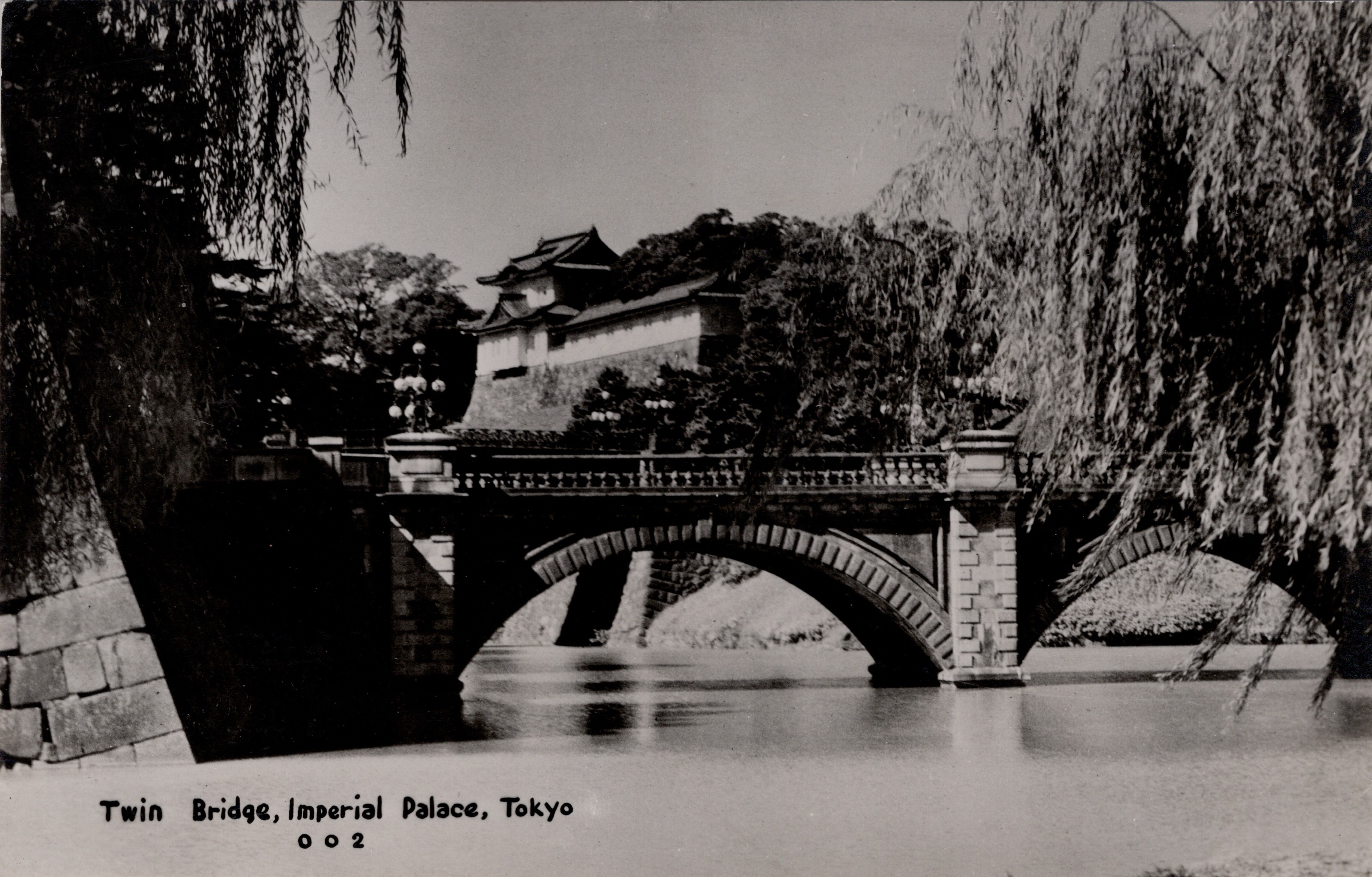 (BJB081) Postcard - Imperial Palace Tokyo, Japan (BJB082) Postcard - Twin Bridge, Imperial Palace, Tokyo, Japan (BJB083) Mount Fuji, Japan as seen from Lake Kawaguchi (BJB084 Tokyo Central Station, Tokyo, Japan (BJB085) Back of postcards. All the postcard were blank (no writing) and had the same print on them.