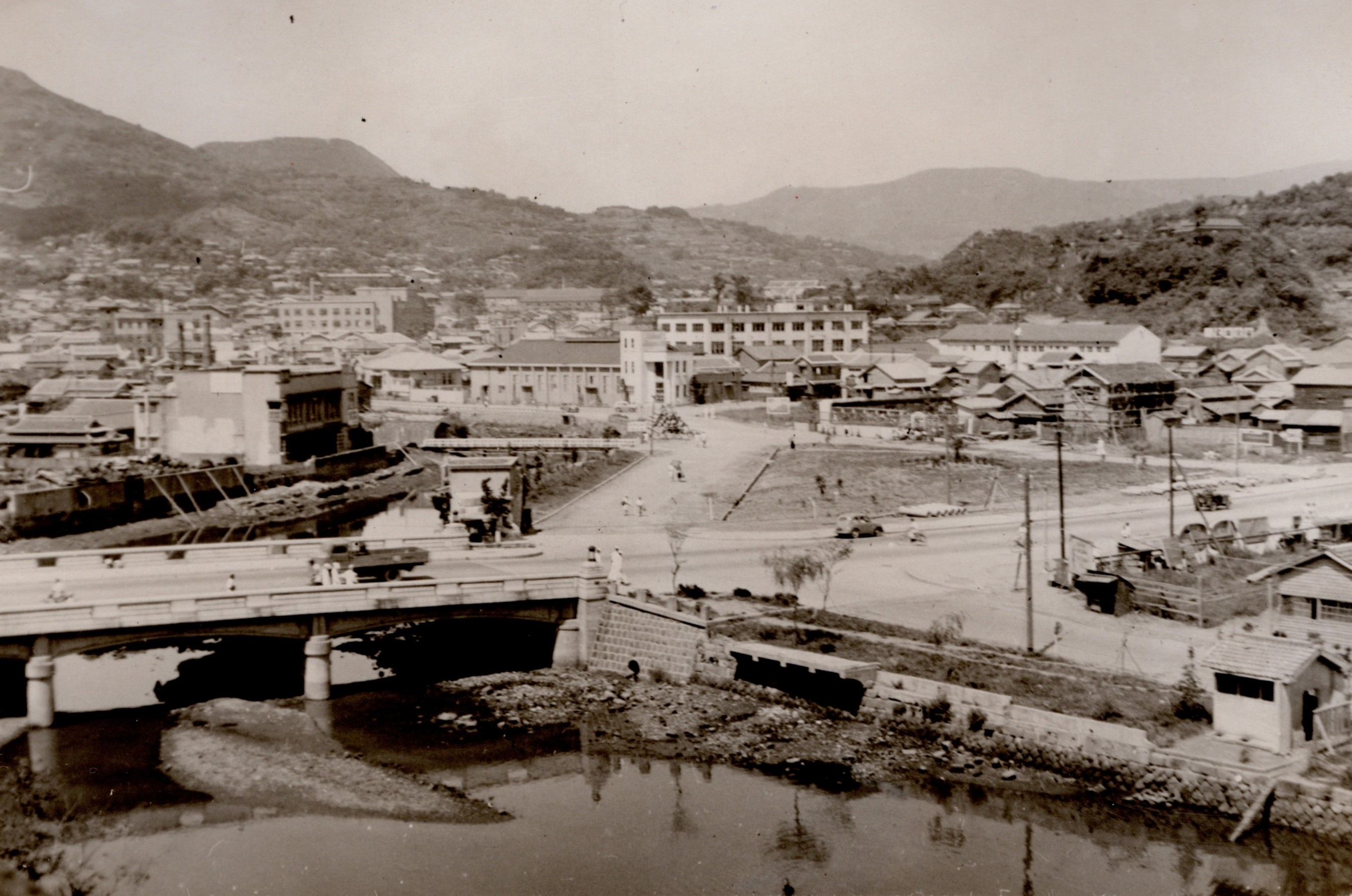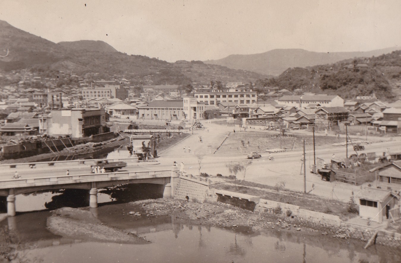 (NRT086) HMCS CAYUGA in dry dock at the SSK Shipyard, Sasebo, Japan (NRT087) HMCS CAYUGA in dry dock at the SSK Shipyard, Sasebo, Japan Webmaster's note: During her 1st Korean tour, HMCS CAYUGA entered dry dock twice - once to check the sonar dome and have the ship painted and the 2nd time to have the screws checked as she backed over the ship's whaler. These two dry dock photos appear to be the 1st dry docking as the 2nd time they only lowered the water enough to check the screws to make sure there was no damage to them. (NRT089) Hiroshima, Japan