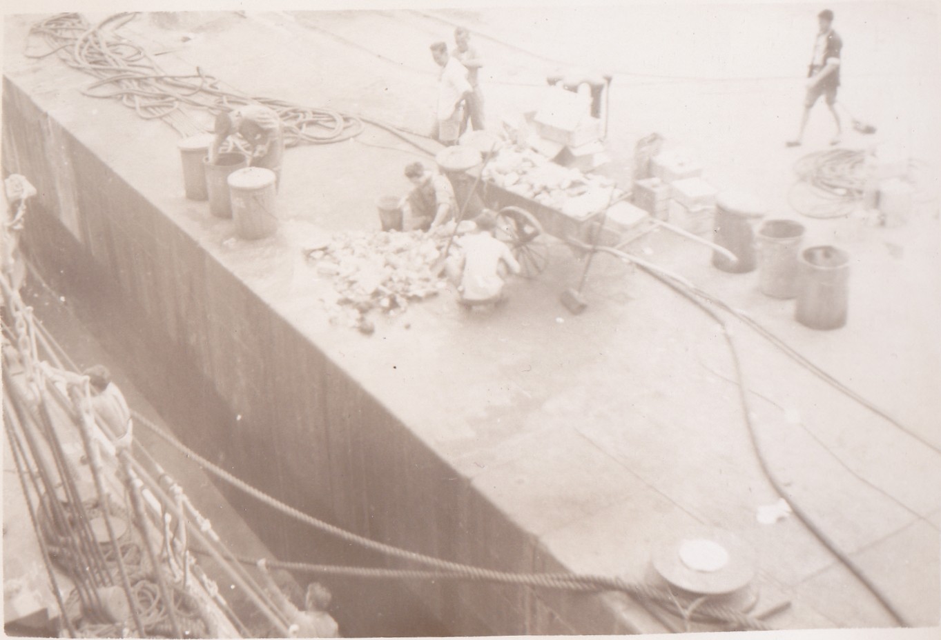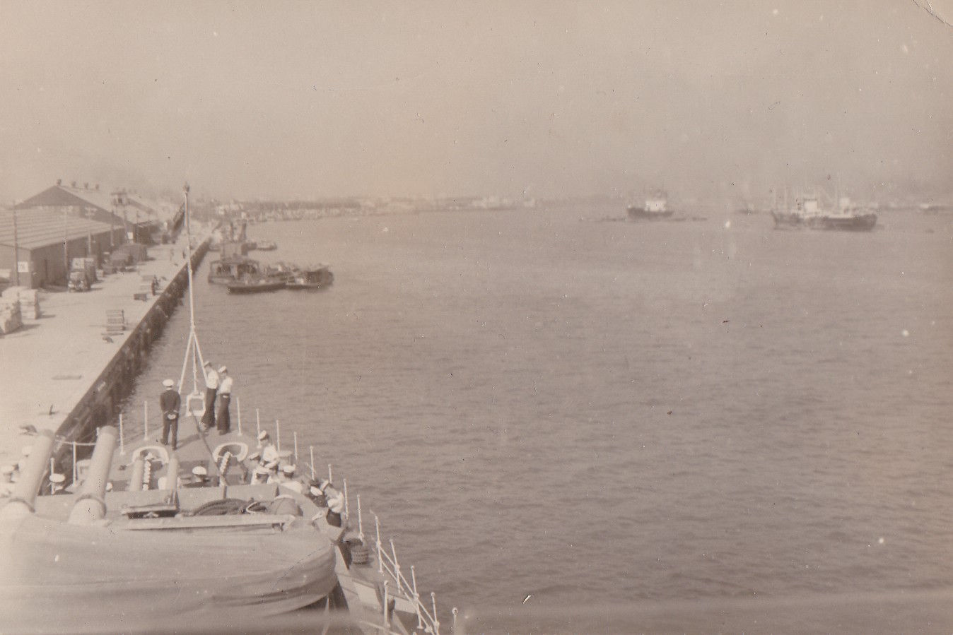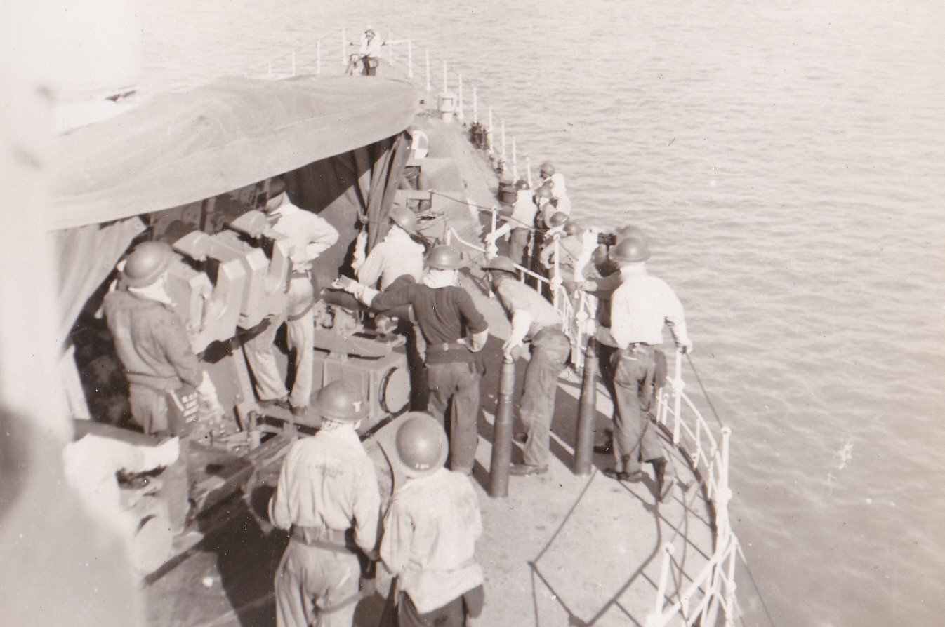 (NRT041) Gun crew on HMCS CAYUGA readying to fire the guns (NRT042) HMCS CAYUGA - after the guns were fired. Note the empty shell casings on the deck (NRT043) Sasebo, Japan (NRT37) HMCS CAYUGA storing ship (NRT044) Ammunition barge at Sasebo, Japan (NRT045) Liberty boat going ashore, Sasebo, Japan, 1950