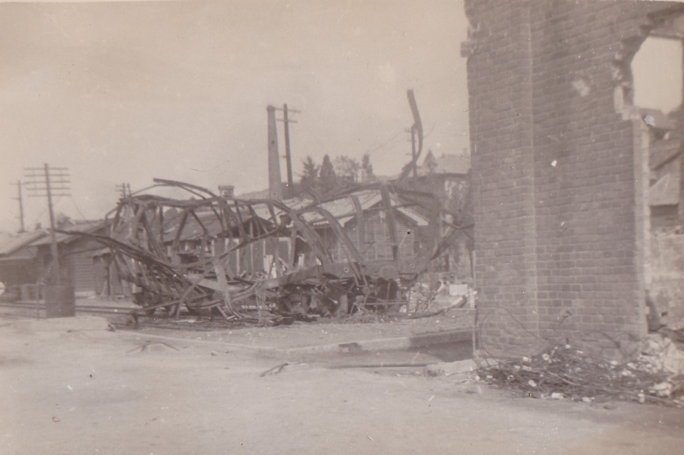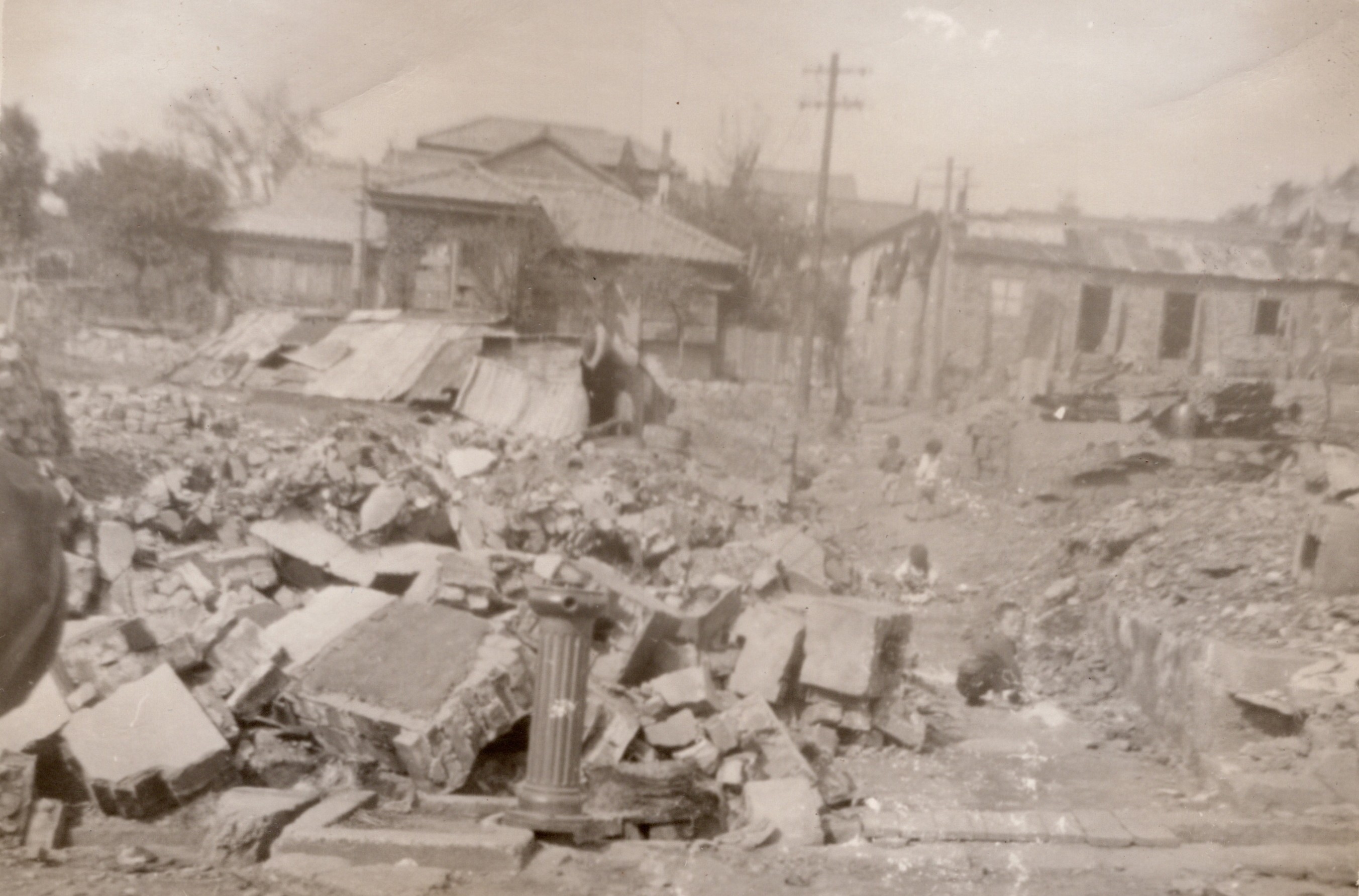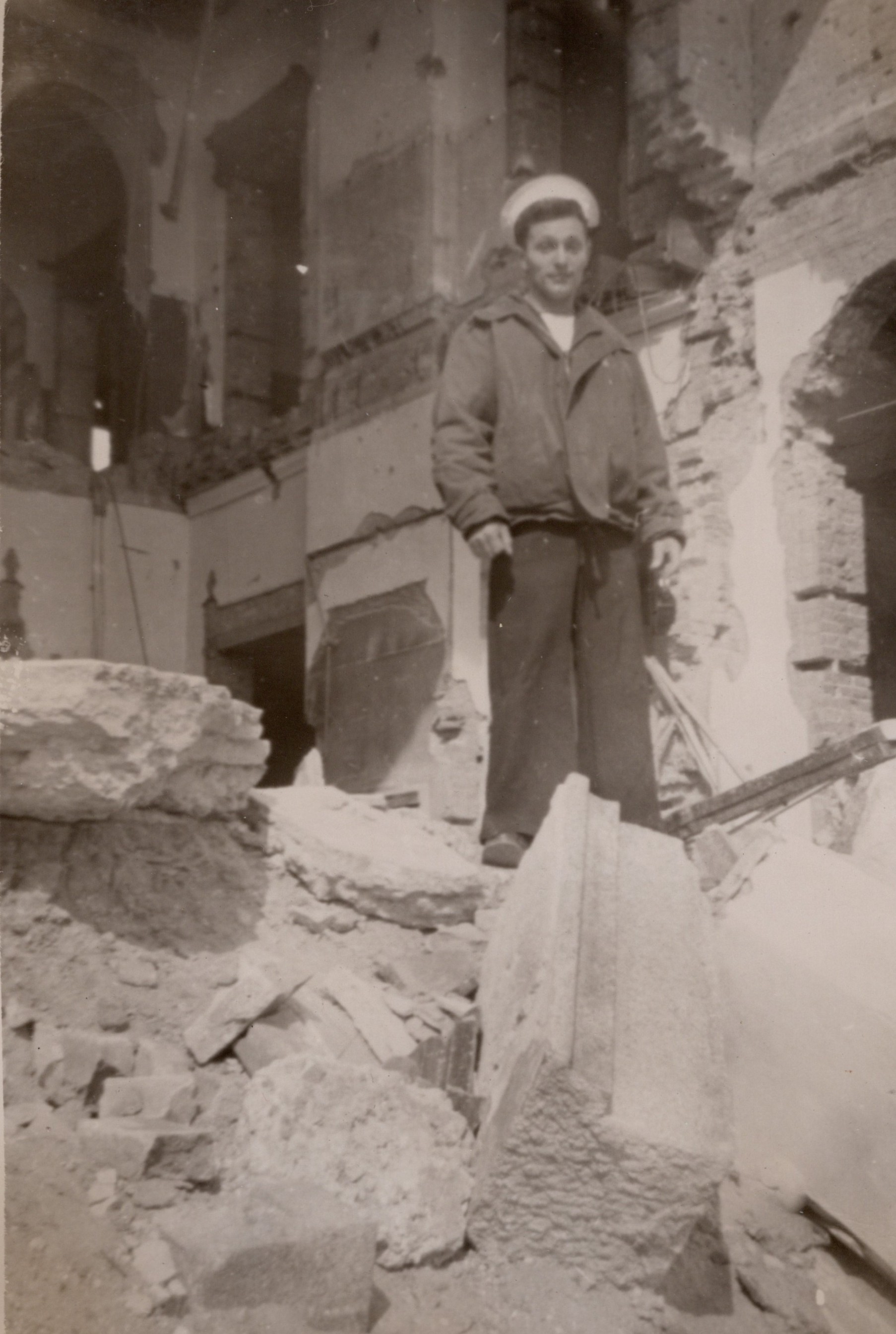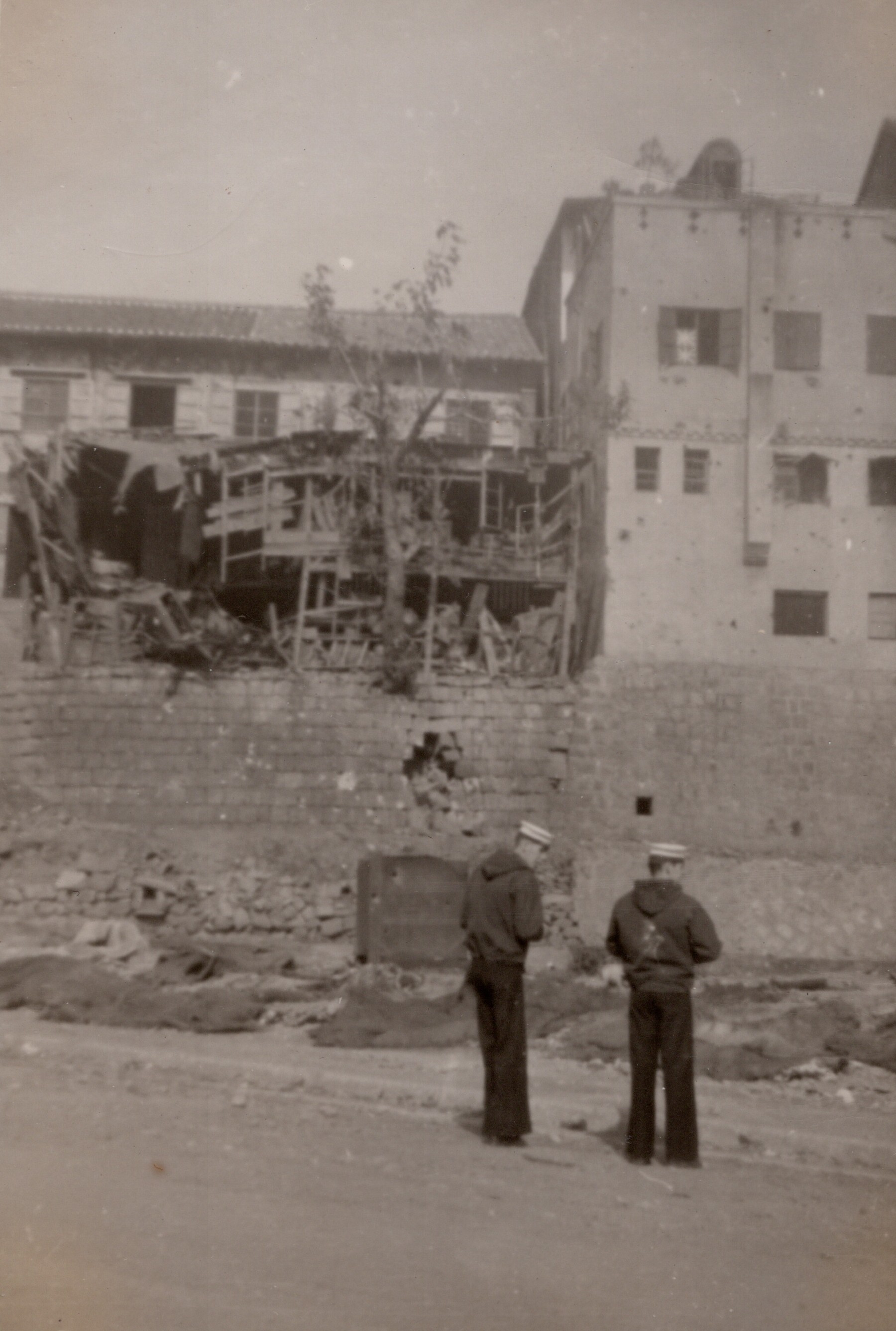 (NRT108) British Consulate at Inchon damaged during the bombardment (NRT109) Unknown sailor standing in the wreckage of the interior of the British Consulate (NRT110) Destroyed factory at Inchon