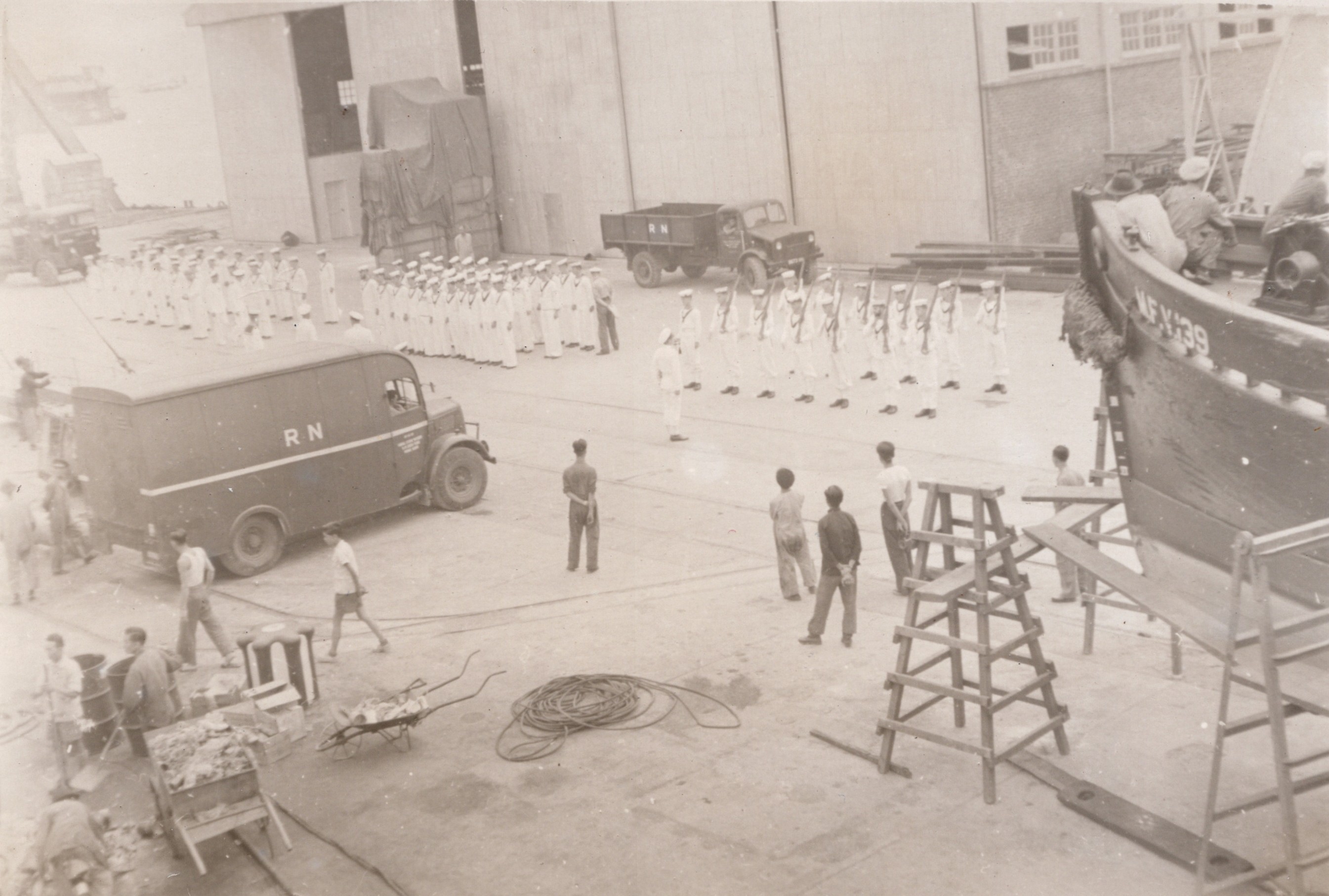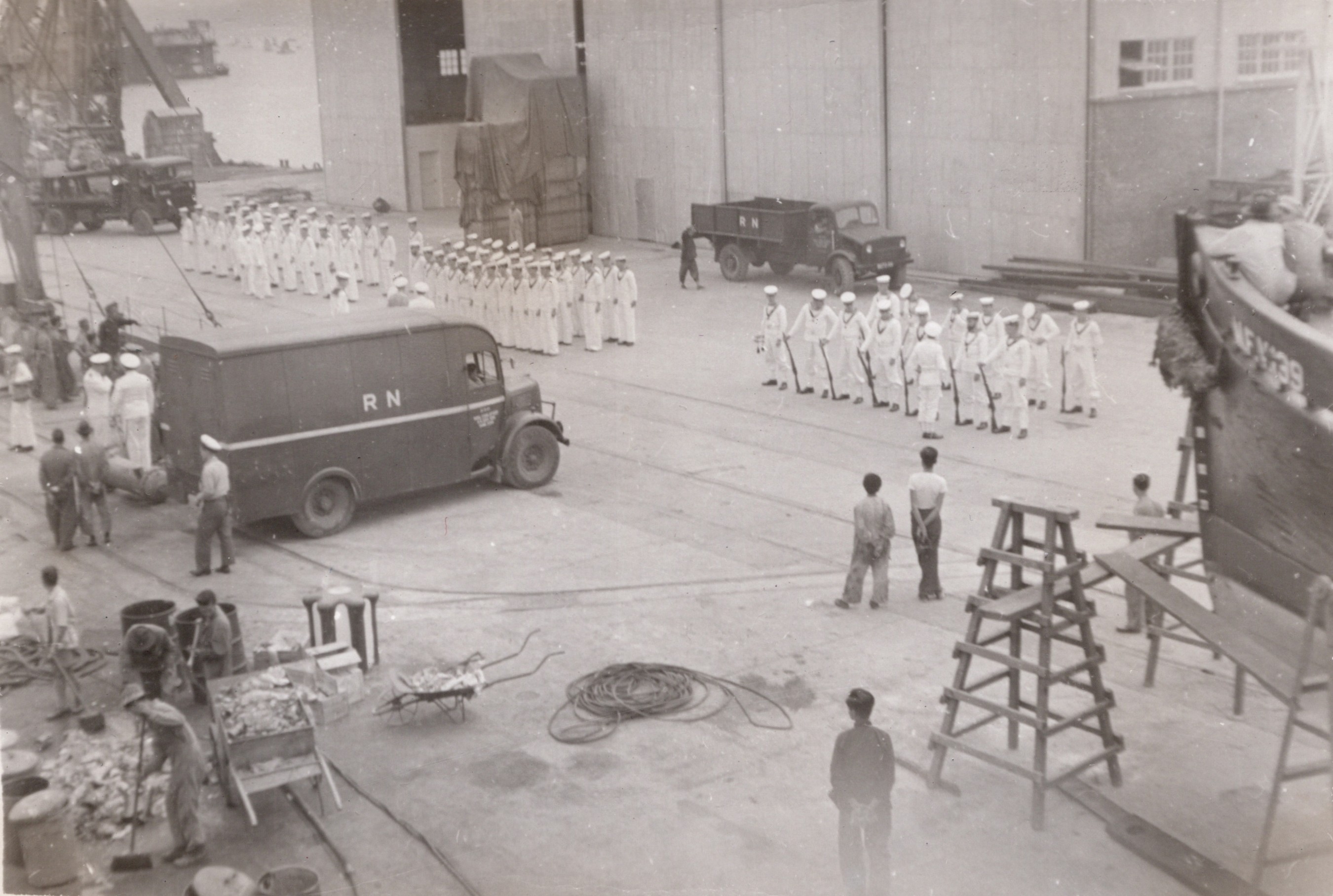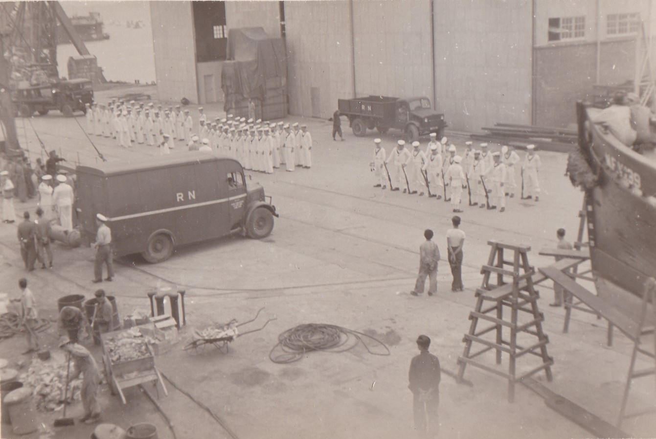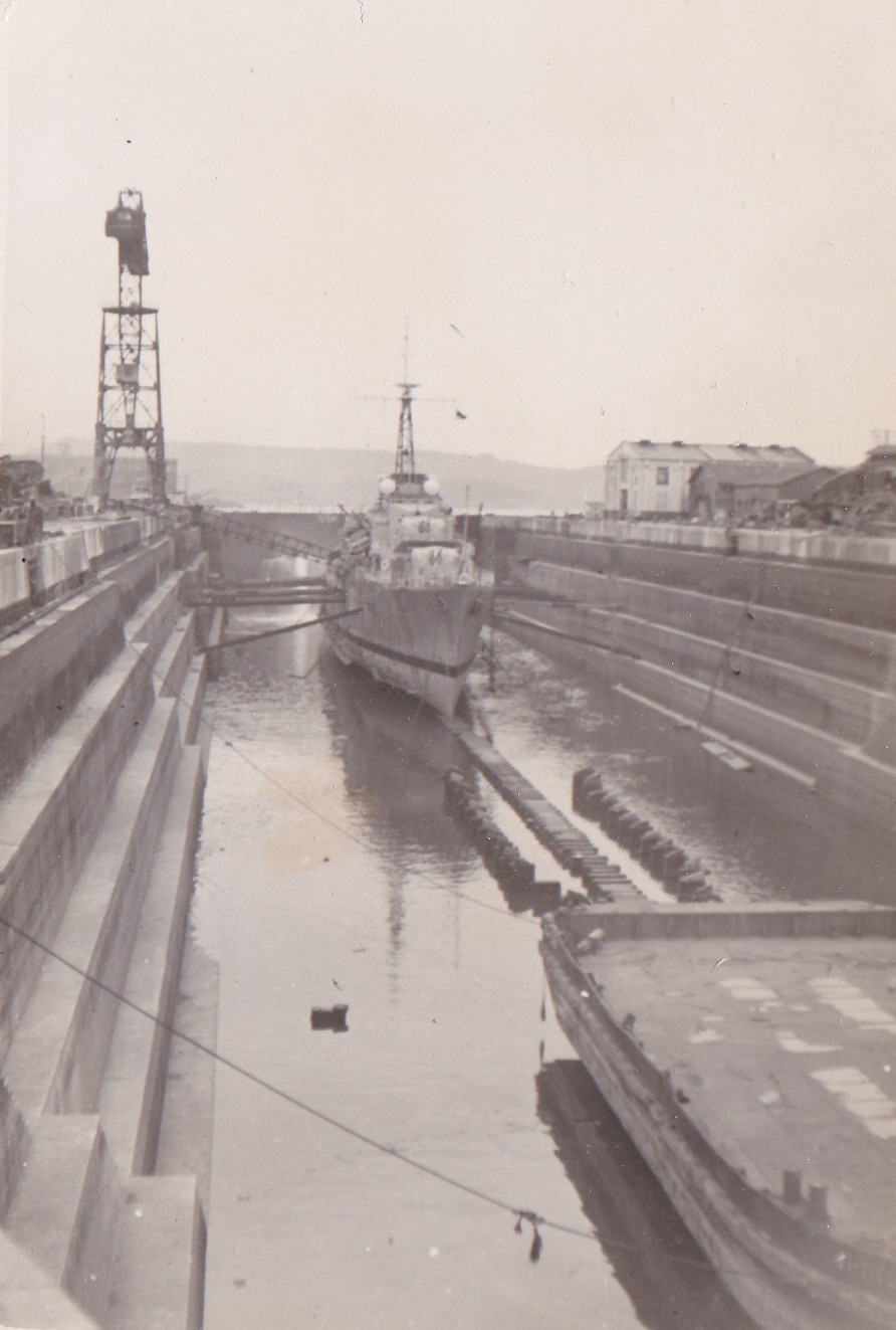 (BJB031) HMS WARRIOR, Sasebo, Japan (BJB032) HMS KENYA (BJB033) Dock at Tokyo, Japan (BJB034 - BJB035) HMCS CAYUGA 218 in drydock at Sasebo, Japan