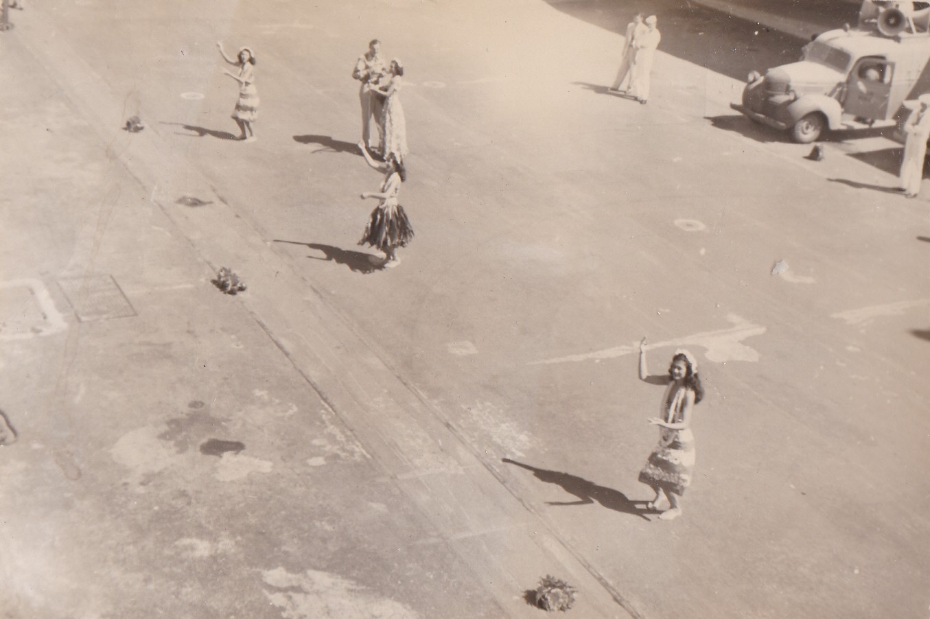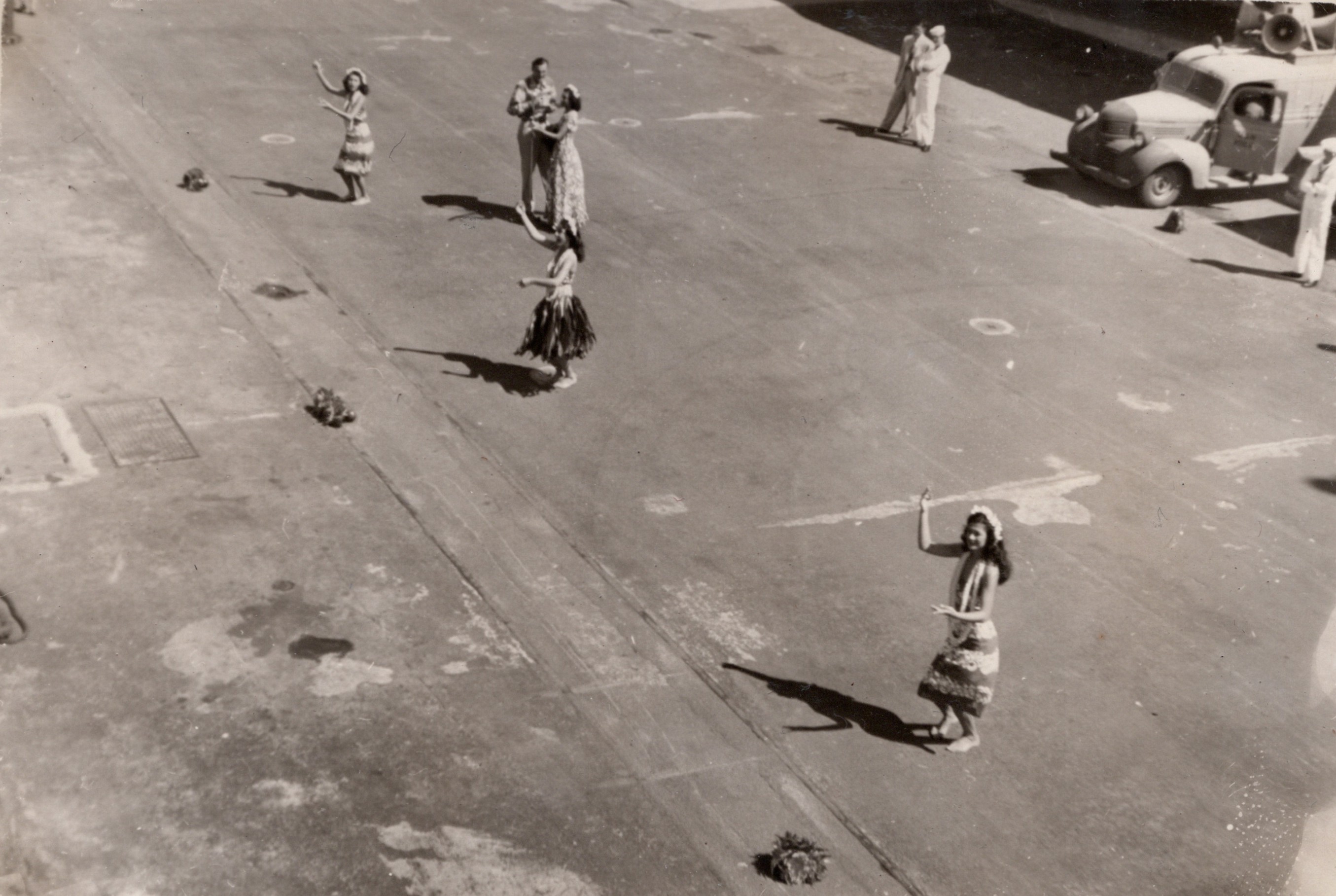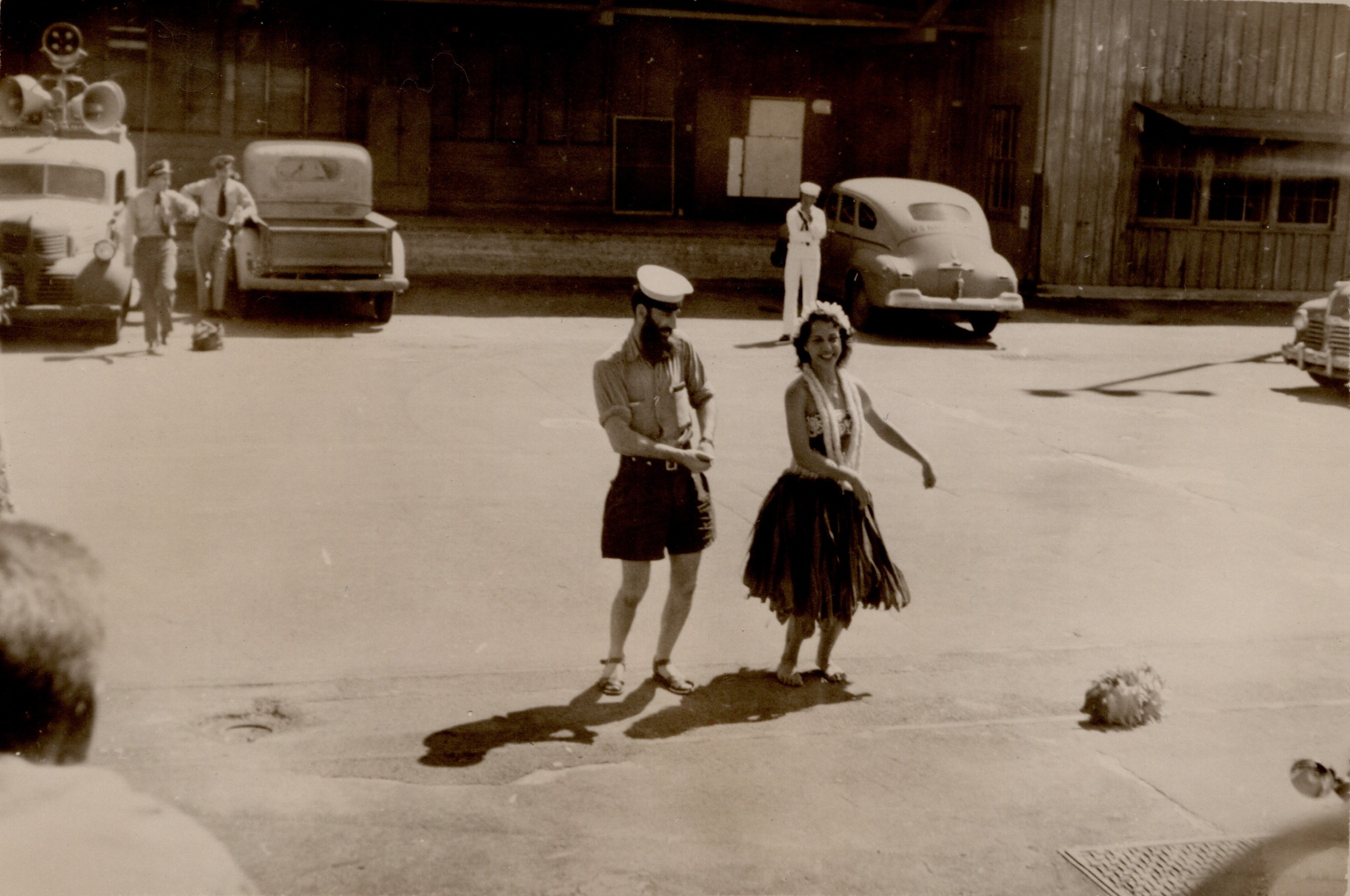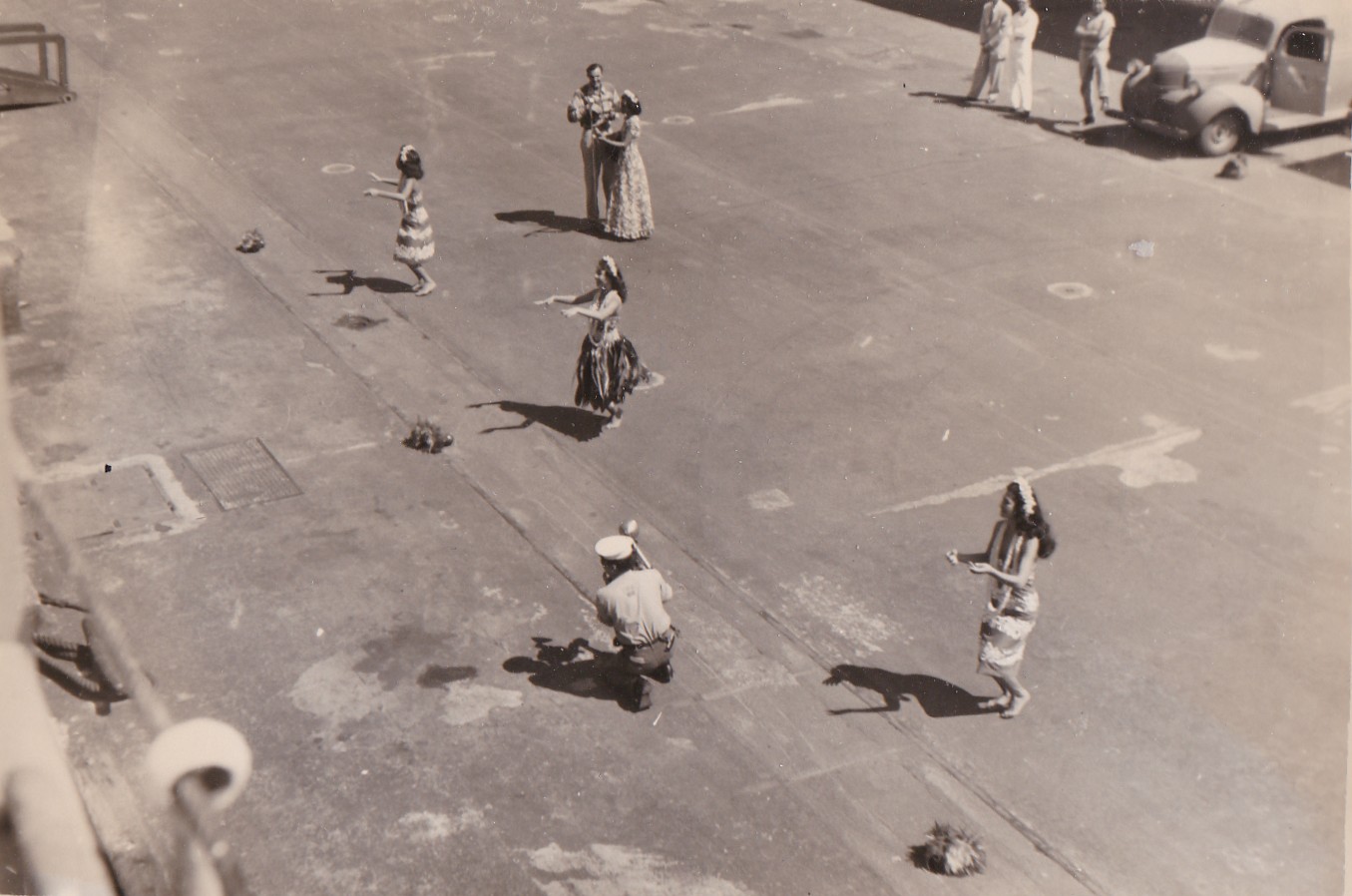 (GS041) HMCS CAYUGA conducting depth charge training enroute to Pearl Harbour, Hawaii (GS042) Hulu dancers greet HMCS CAYUGA on arrival at Pearl Harbour - CAYUGA's last port of call before heading home to Esquimalt. Courtesy of George Spicer, Chief Petty Officer 2nd Class Firecontrolman, RCN