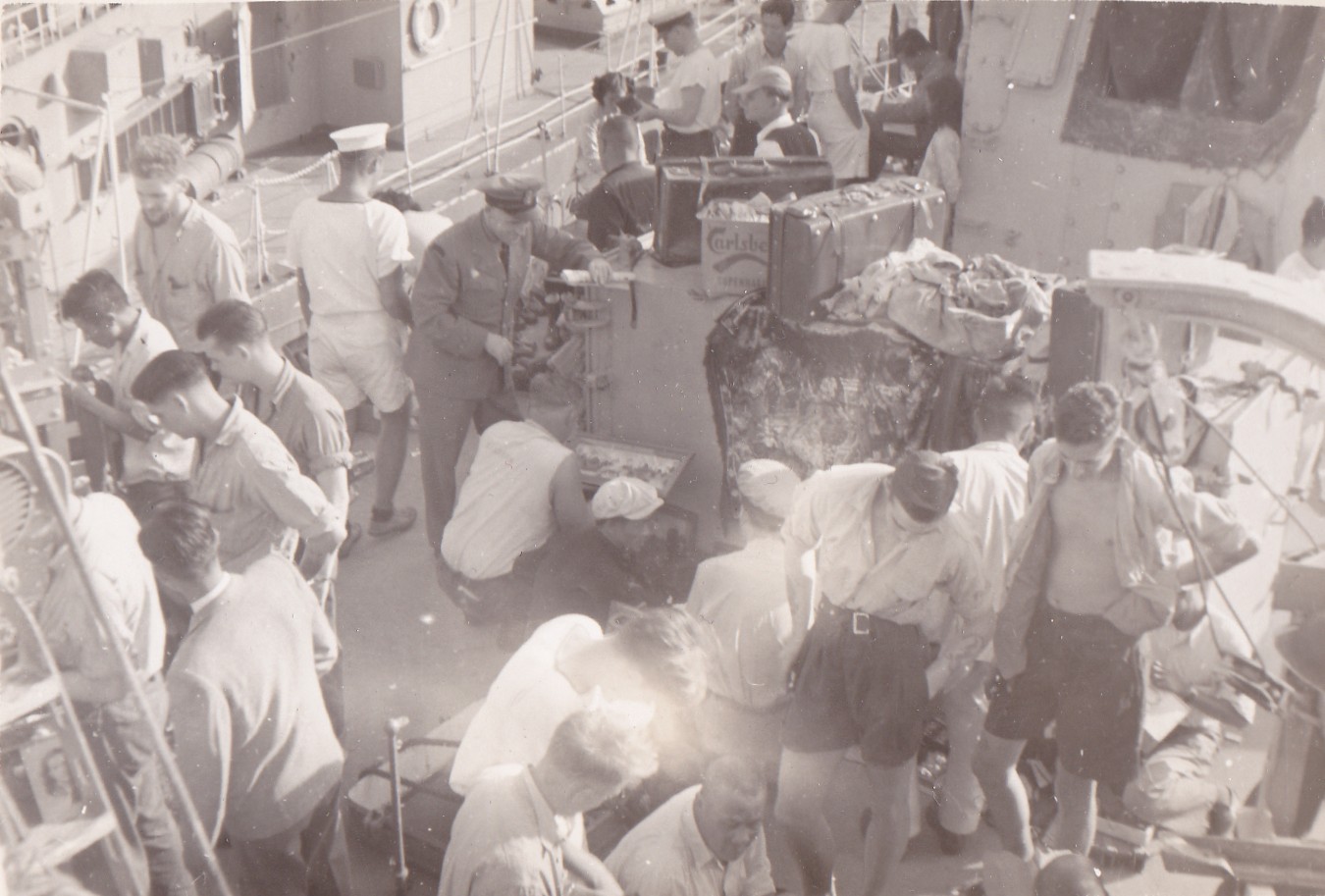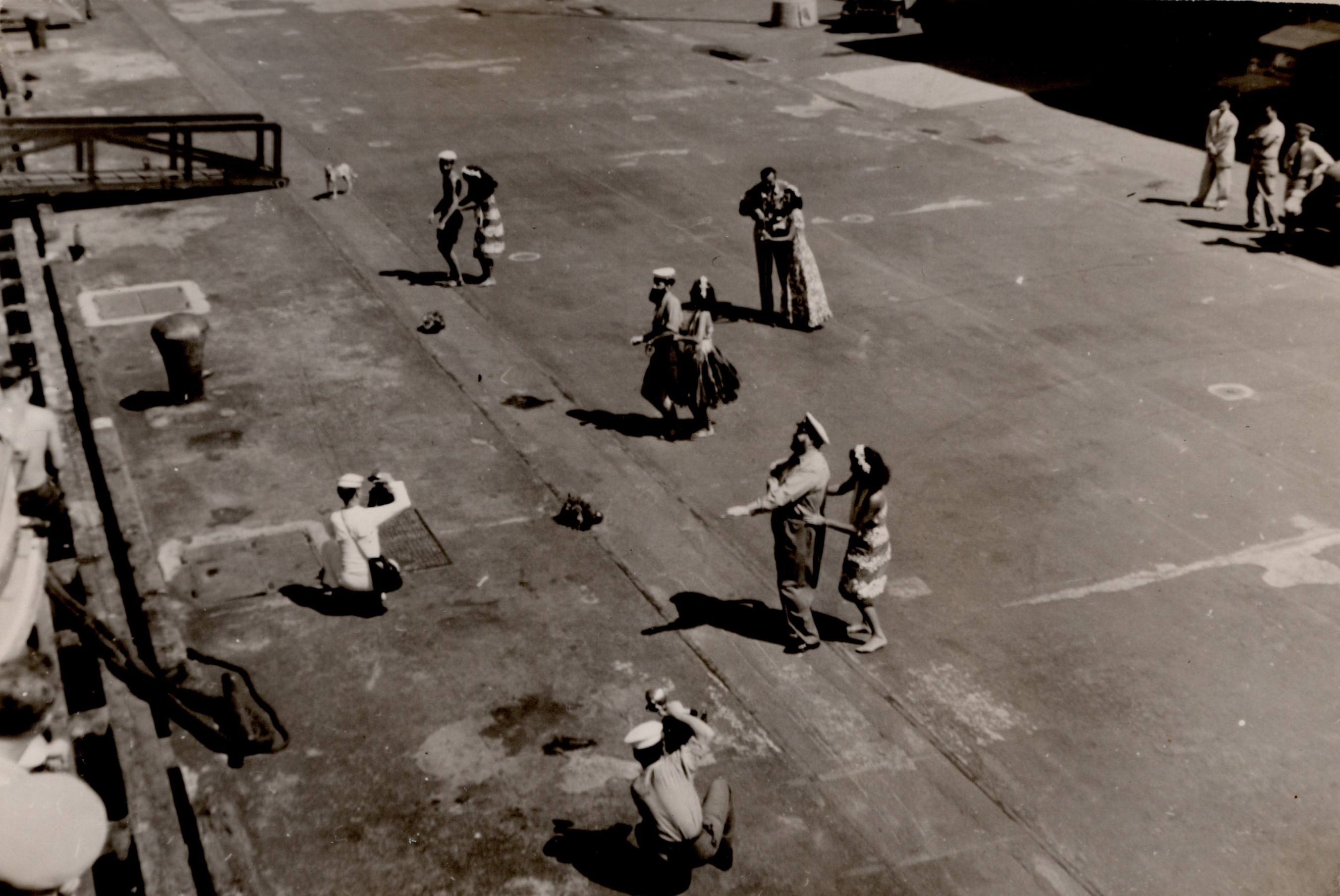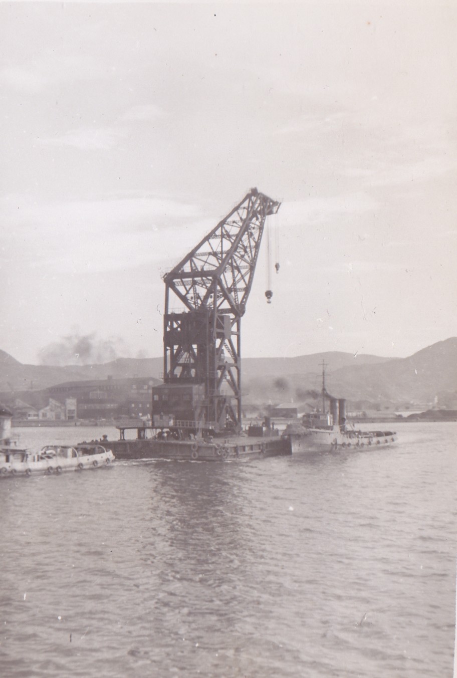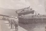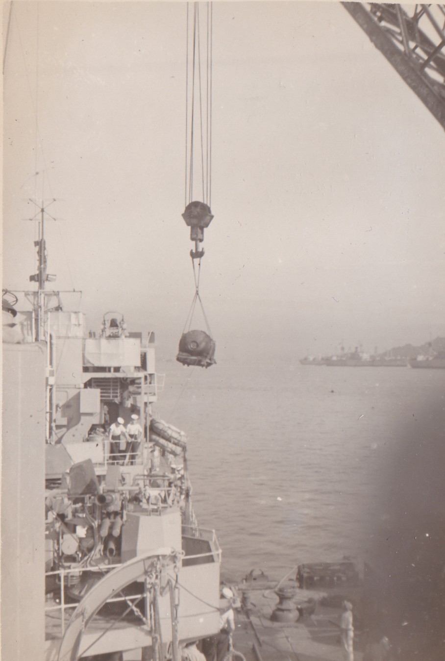 (GS006) Liberty men going ashore, HMCS CAYUGA 1950-1951 (GS007) Landing barge in Sasebo Harbour, HMCS CAYUGA 1950-1951 (GS008) After 40mm Bofer AA gun, HMCS CAYUGA 1950-1951 (GS009) ABNQ Sterling with ship's mascot Alice, HMCS CAYUGA 1950-1951 (GS010) Japanese worker on the end of a crane in Kuri, Japan, HMCS CAYUGA 1950-1951