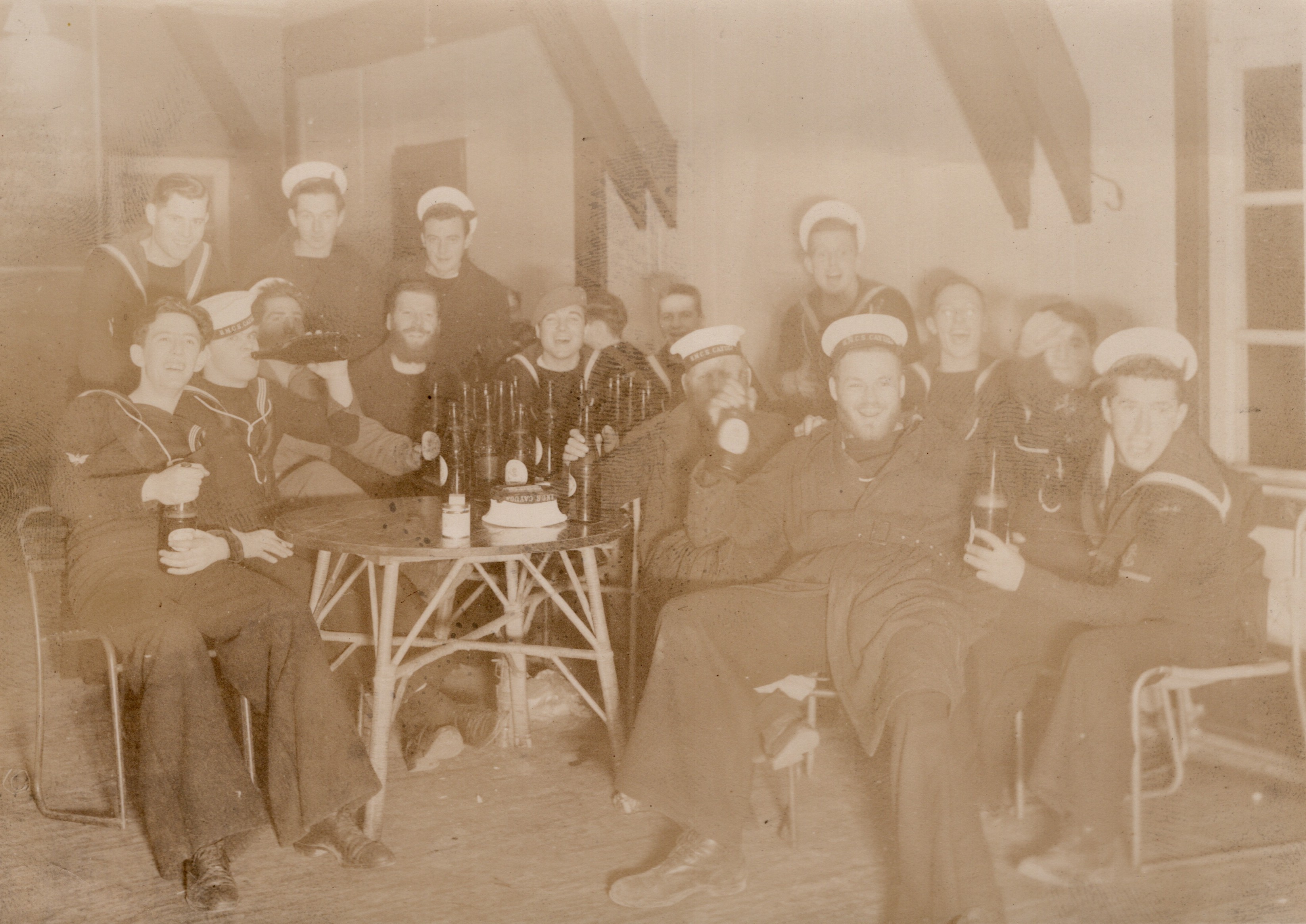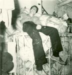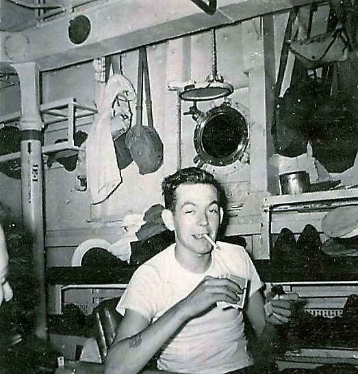 (GS011) (L-R) Don, Pat, Scott and Butterworth, HMCS CAYUGA 1950-1951 (GS012) ABLR F. Hughes building a model ship, HMCS CAYUGA 1950-1951 (GS013) Playing cards in the mess deck, HMCS CAYUGA 1950-1951 (GS014) Rough seas in the Yellow sea, HMCS CAYUGA 1950-1951 (GS015) ABAA Mckay and ABNQ Scott in the mess deck, HMCS CAYUGA 1950-1951