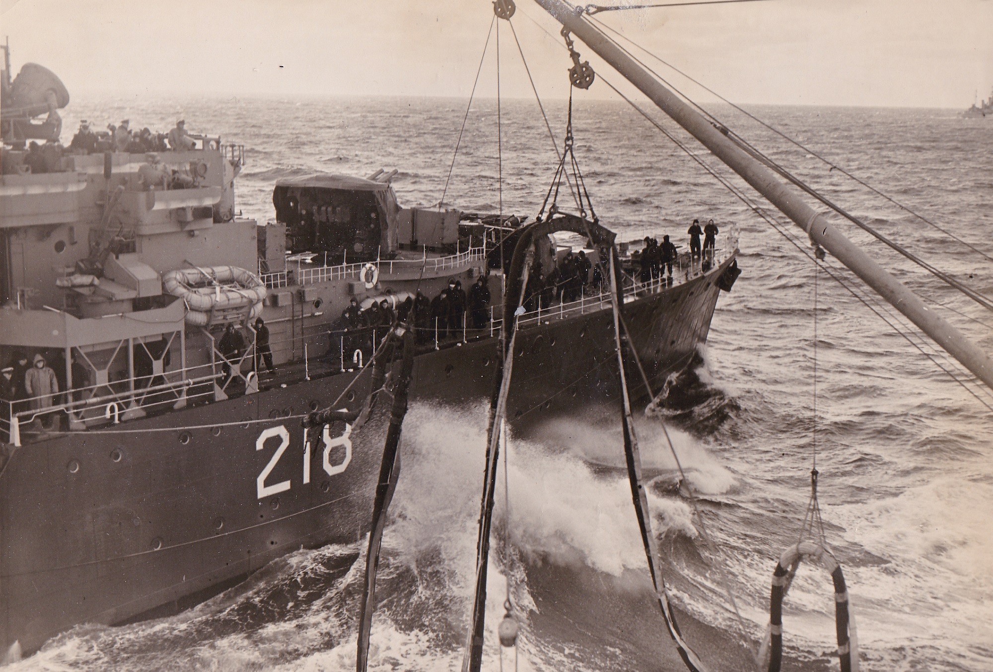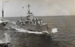 (NRT005) HMCS CAYUGA 218 conducting a RAS with an unknown ship