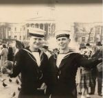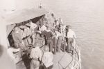 (CAY026 - CAY027) Whaler from HMCS Sioux 225 being exchanged with the whaler from HMCS CAYUGA 218 - 1954 // From the collection of Joe Tanner // Courtesy of Steve Hlasny (CAY028) NATO Exercise A Success Despite Severe Storms - 29 Oct 1969 // Newspaper article on 1963 NATO Exercise // Courtesy of Art Moore (CAY029)George Watt ( Calgary Boy) & Gerald Uniac (London Ontario lad) on HMCS CAYUGA, Korea, 1951 // Courtesy of Christopher Watt (CAY030) George Watt & Don Cathgard (Kitty), ashore in Victoria, 1951 (while drafted to HMCS CAYUGA) // Courtesy of Christopher Watt