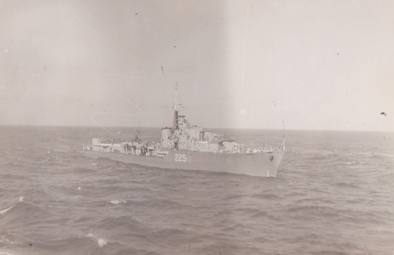 (CAY006) "BROKEN ARROW" - HMCS CAYUGA searches for a lost USAF bomber and its nuclear payload - Feb 1950 // The Crowsnest Magazine Apr 1950 (CAY007) John Radley on the bridge of HMCS CAYUGA during her Second Korean War Tour // From the collection of John Radley, P1CV2, RCN (CAY008) Father and son meet mid-Pacific // CPO Max Bernays, Chief Bos'n on HMCS CAYUGA meets his son, OS Max Bernays, HMCS Sioux onboard HMCS CAYUGA midway between Pearl Harbour and Kwajalein Atoll - 01 Dec 1954 // Article form the Crowsnest magazine // Courtesy of Steve Hlasny (CAY009) HMCS CAYUGA 218 underway off Korea - Wednesday, 03 Mar 1954 // USN photo - public domain (CAY010) Second Canadian Escort Squadron - Spring Cruise 1958 // HMCS Crescent, HMCS CAYUGA, HMCS SKEENA, HMCS FRASER, HMCS MARGAREE // Courtesy of Dave Tyre
