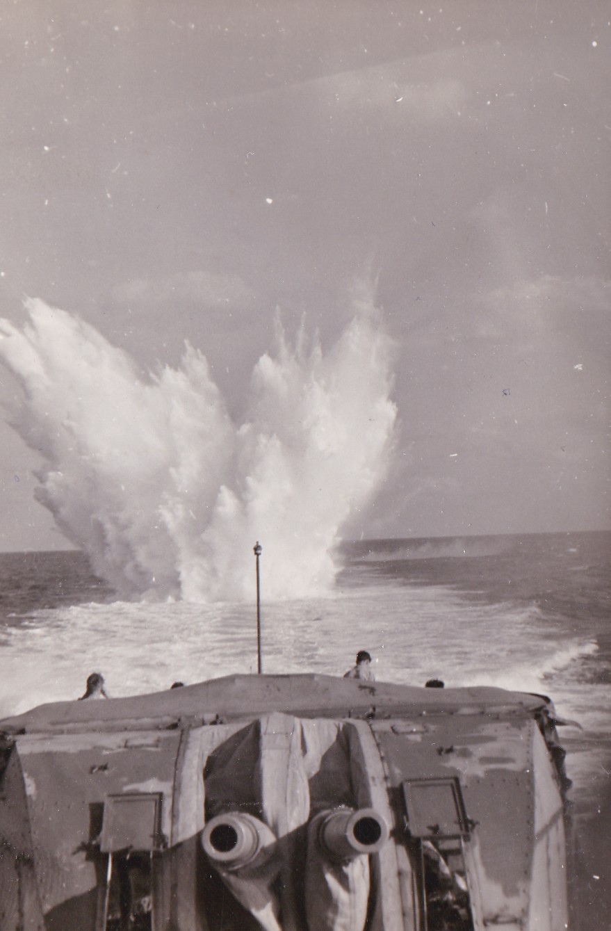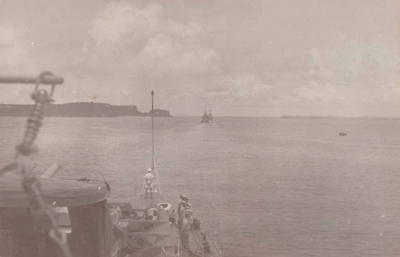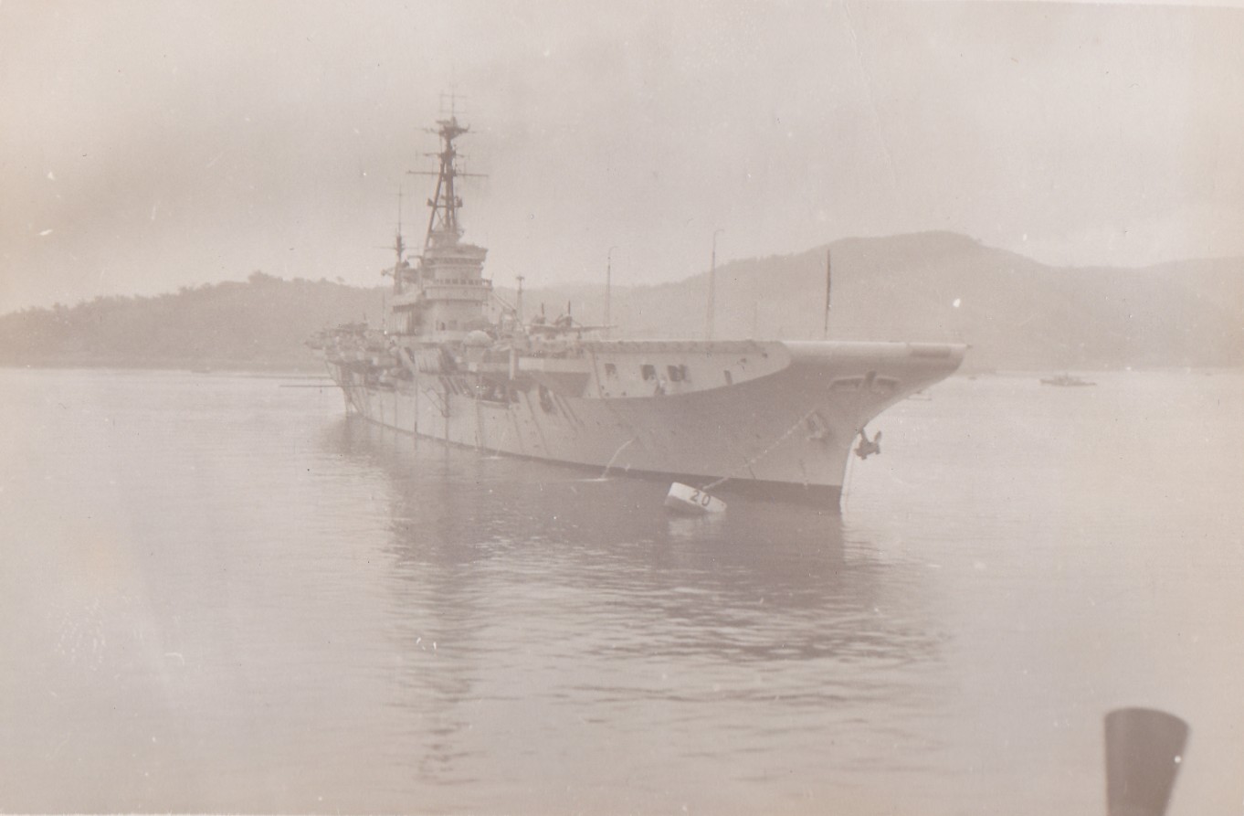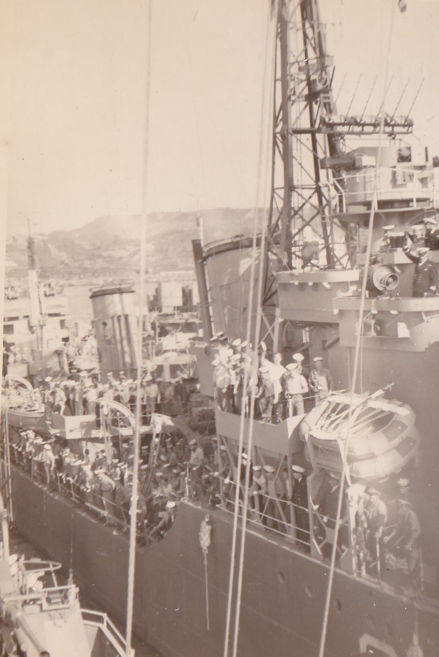 (BJB071) HMCS CAYUGA, left foreground, HMCS NOOTKA 213, ship on port side of NOOTKA unknown (BJB072) Unknown British light cruiser (BJB073) Three unknown sailors believed to be at Sasebo - this photo was marked 185, then crossed out and an x put on the photo (BJB074) HMCS CAYUGA 218 dropping depth charges for training enroute to Pearl Harbor. (BJB075) Arrival at Pearl Harbour. Last port of call before heading home to Esquimalt