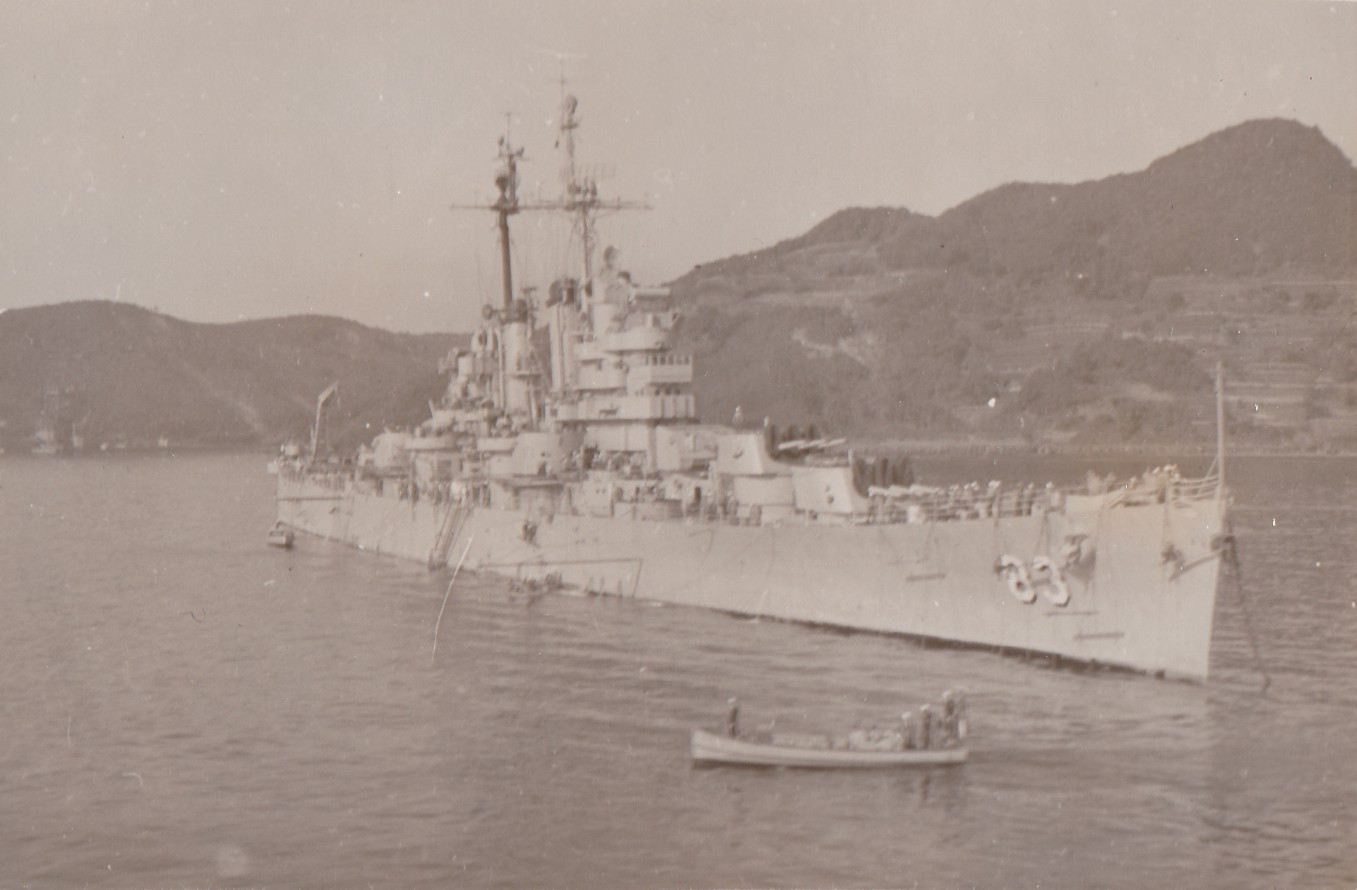 Allied ships - photos taken from HMCS CAYUGA 218 (BT063) HMS TRIUMPH (BT064) HMS CONSTANCE (BT065) USS MISSOURI with USS SAINT PAUL 73 on her port side secured to a buoy, Sasebo, Japan (BT066) USS SAINT PAUL 73 as anchor at Sasebo, Japan (BT067) HMS SHEFFIELD