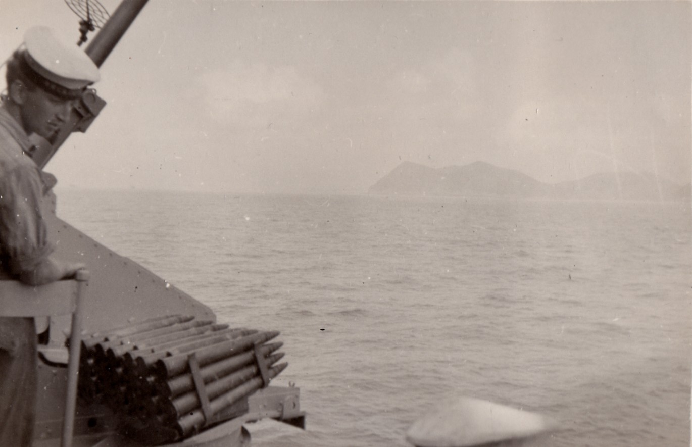 (GS036) USS MISSOURI and USS SAINT PAUL, Sasebo, Japan 1950-1951 (GS037) Hiroshima, Japan 1950-1951 (GS038) Sasebo, Japan 1950-1951 (GS039) HMCS CAYUGA on patrol on the west coast of Korea 1950-1951 (GS040) ABNQ George Spicer holding a 4-inch shell, HMCS CAYUGA 1950-1951