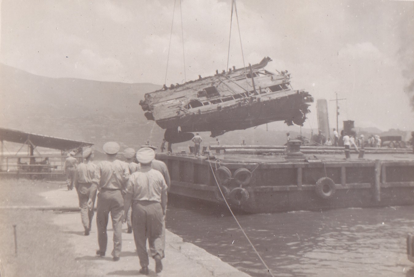 (BT073) HMCS CAYUGA in dry dock, Kure, Japan - 1950 (BT074) Sampan off Korea - 1950 (BT075) Turnover prior to HMCS CAYUGA leaving Korea (BT076) HMCS CAYUGA Korean War tour jacket patch