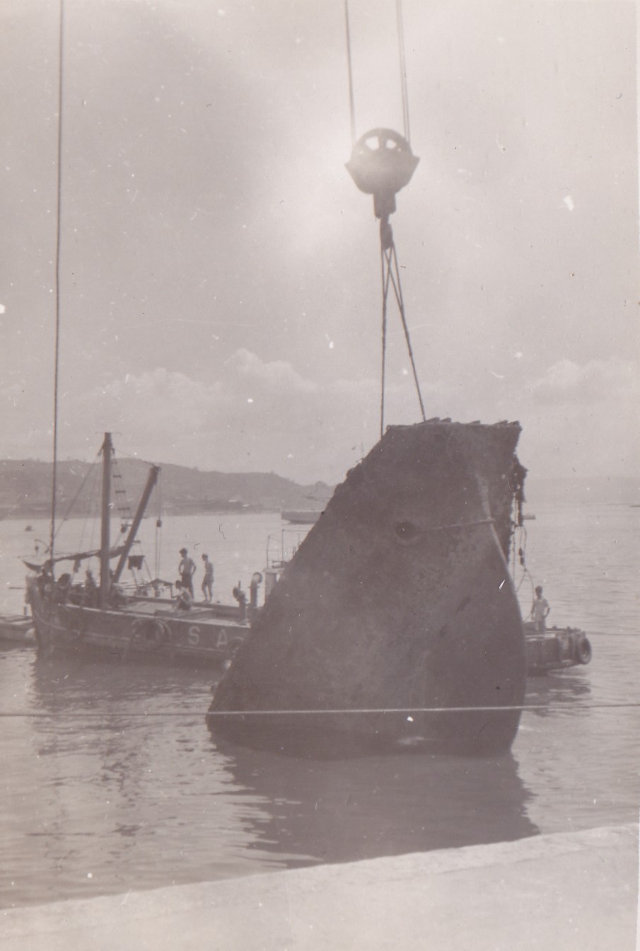 (NRT085) A North Korean mine being landed from HMCS CAYUGA for testing