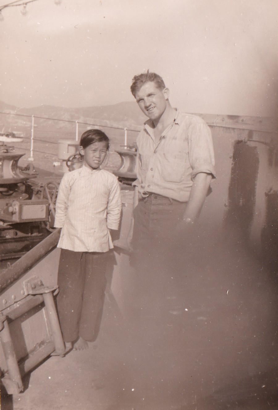 (GS026) ABNQ George Spicer with ship's mascot Alice, HMCS CAYUGA 1950 (GS027) "It's damn cold!" - ABNQ George Spicer, HMCS CAYUGA 1950 (GS028) Don and his buddy, Sasebo, Japan, HMCS CAYUGA, 1950 (GS029) ABNQ Holman, Korea, HMCS CAYUGA 1950-1951 (GS030) HMCS CAYUGA refueling from a British tanker in the Yellow Sea 1950-1951