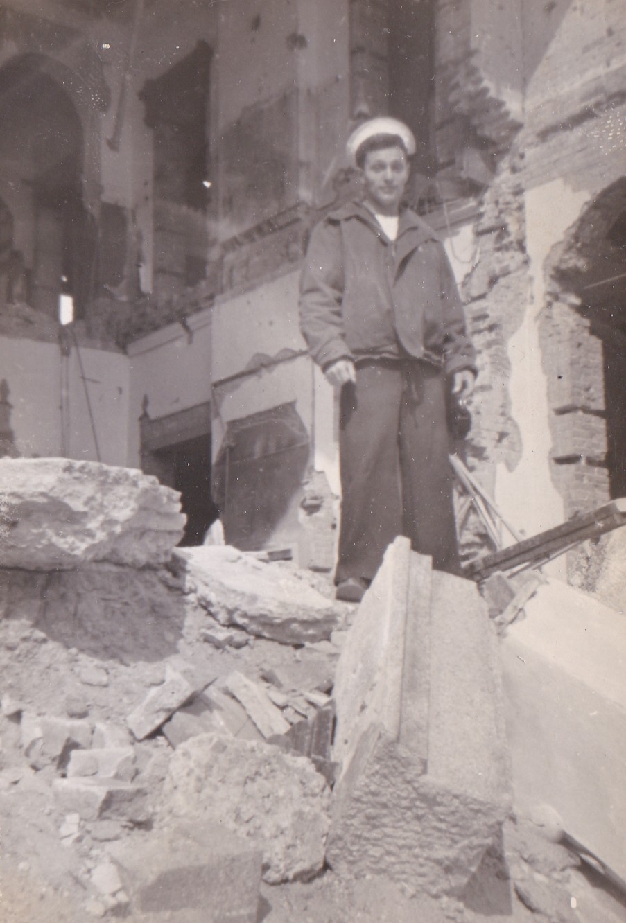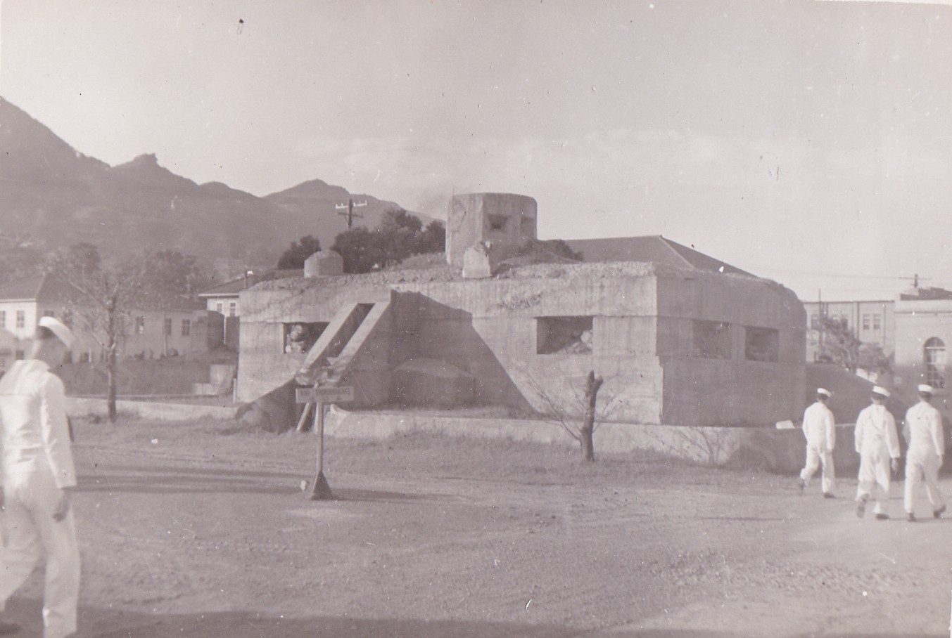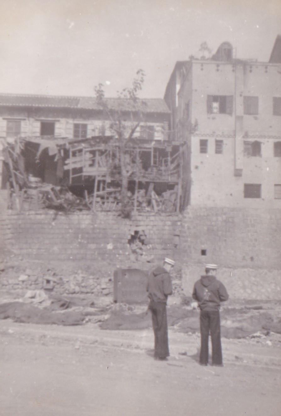 (BJB046 - BJB047) Results of bombardment at Chinnampho on 05-06 Dec 1950. Evacuation started early in morning then ships, HMAS BATAAN, HMAS WARRAMUNGA, USS FORREST ROYAL, HMCS SIOUX, HMCS ATHABASKAN and HMCS CAYUGA opened fire on supplies, ammo and fuel. Click here for more information on the the withdrawal from Chinnampho, Korea (BJB048) Wolmi-Do after bombardment during the Battle of / landing at Inchon, South Korea (BJB049) British Consul damaged by shell fire (BJB050) Unknown sailor standing the in the debris in the interior of the British Consul