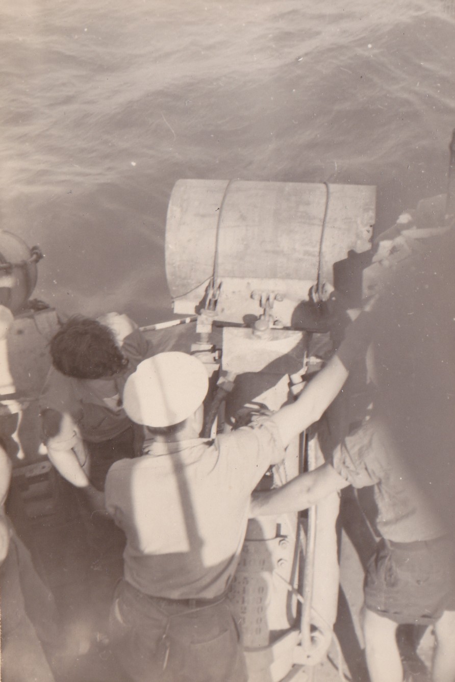 (JAT036) Jim Tyre in mess deck on HMCS CAYUGA, 1951 (JAT037) Jim Tyre on HMCS CAYUGA, 1951 (JAT038) 40 mm Bofor Crew on HMCS CAYUGA, 1950-51 (JAT039) Rod Grant on HMCS CAYUGA by Twin 40 mm, 1950-51 (JAT040) Willie Doherty and Rod Grant by Twin 40 mm, HMCS CAYUGA, 1951
