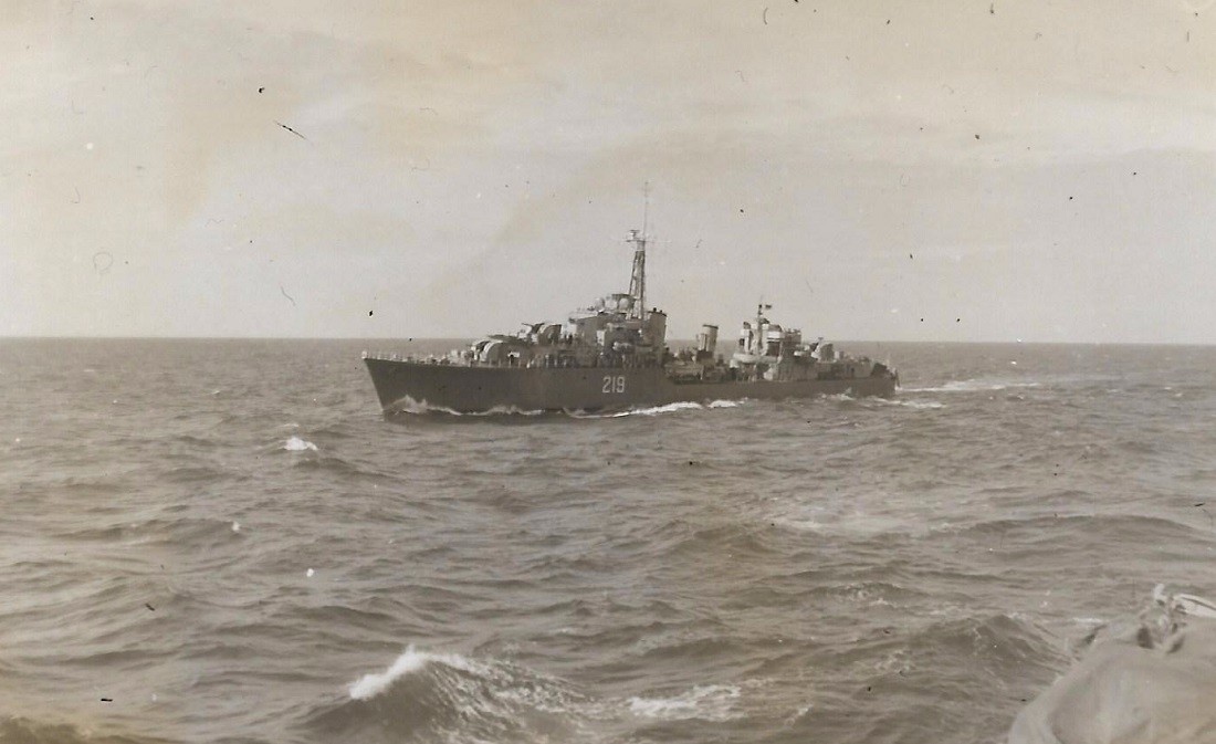 (NRT022) HMS Charity D29 approaching HMCS CAYUGA (NRT023 - NRT024) USS TOLEDO 133 (NRT025) USS MANCHESTER 83