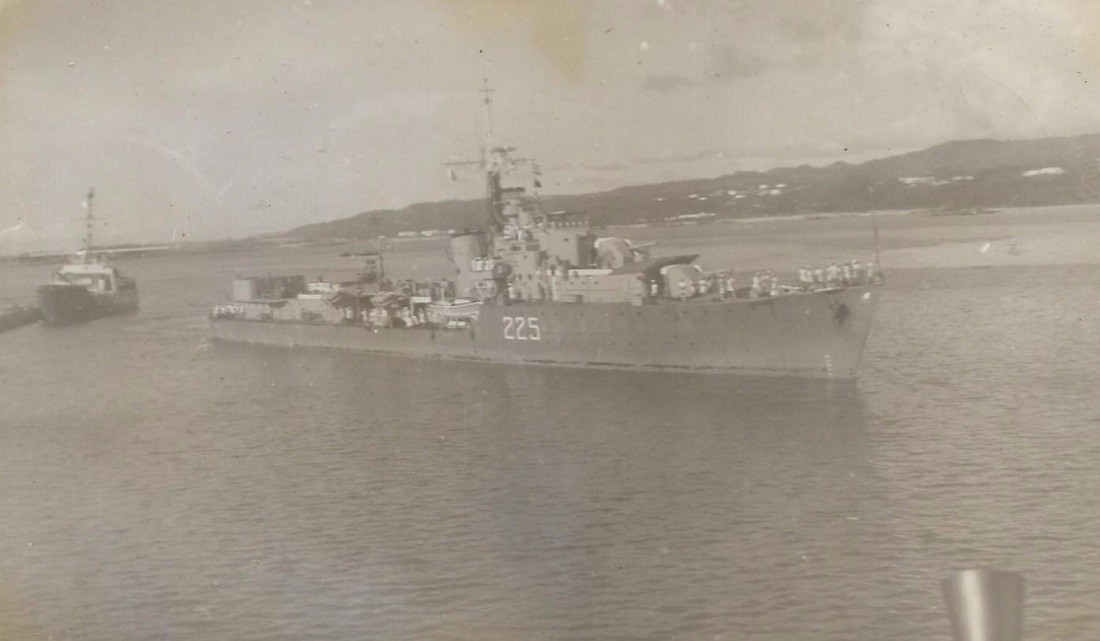 (BJB076 - BJB080) HMCS CAYUGA 218 is welcomed at Pearl Harbor, Hawaii.