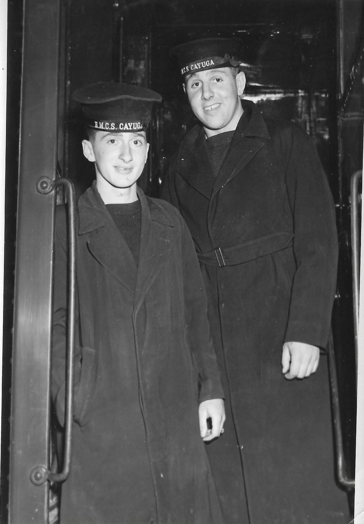 (CAY031) OSWS William Bradley, 56964-H, (right) and shipmate OSWS MacDougal (or McCloud) - just called him Mac. // This was taken in London during CAYUGA’s last trip across the pond in Sept 1963. England, Ireland, Scotland and Norway // Courtesy of Bill Bradley (CAY032) OSWS William Bradley, 56964-H, (right) and shipmate OSWS MacDougal (or McCloud) - just called him Mac. // This was taken in Trafalgar Square during CAYUGA’s last trip across the pond in Sept 1963. England, Ireland, Scotland and Norway. // Courtesy of OS Bill Bradley (CAY033) HMCS CAYUGA 218, part of the 3rd Destroyer Squadron - date unknown // Courtesy of Dennis McGillivray // DND-RCN photo (CAY034) HMCS CAYUGA 218 // DND- RCN Photo