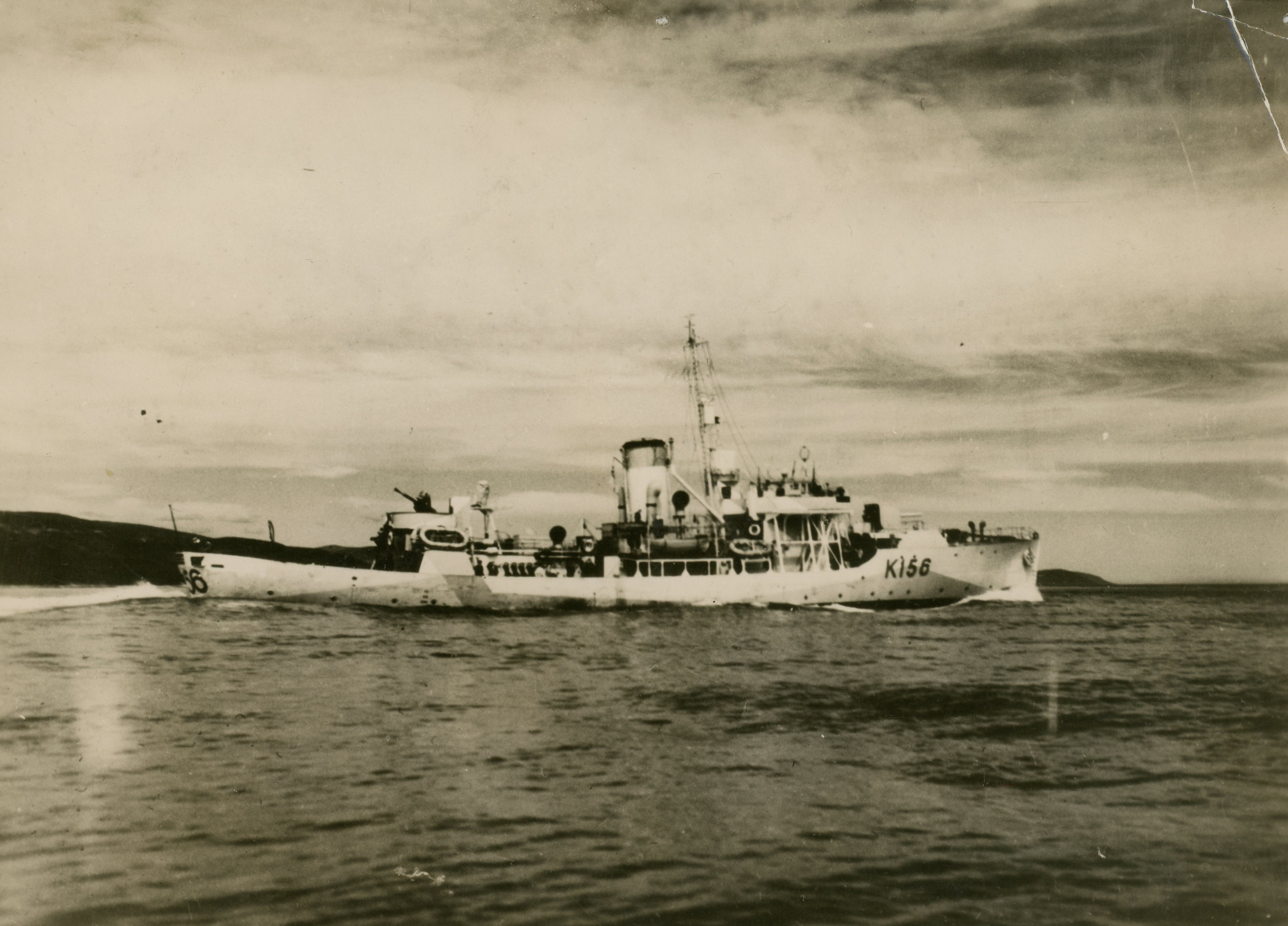 (CTM001) HMCS CHICOUTIMI K156 in 1942 // Source: Flickr photo collection of Ron Bell (CTM002) HMCS CHICOUTIMI K156 (CTM003) HMCS CHICOUTIMI K156 (CTM004) Two officers of HMCS CHICOUTIMI standing by the gunshield art of the ship's forward gun, Halifax, NS - June 1945 // Library and Archives of Canada MIKAN no. 3303861 (CTM005) HMCS CHICOUTIMI K156 // Photo taken from unknown ship - RCN photo