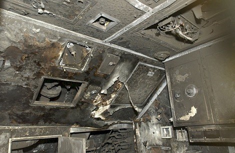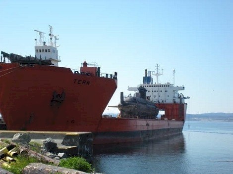 (CCT001) Fire damage to the Commanding Officers cabin on HMCS CHICOUTIMI // Source: Wikipedia / Board of Inquiry into the fire on HMCS CHICOUTIMI // Photographer: MCpl Paul MacGregor, Canadian Forces Combat Camera, October 14, 2004 at Faslane, Scotland (CCT002) HMCS CHICOUTIMI arrives in Halifax on the Eide Transporter in February 2005 // Courtesy of Brian Lapierre / © Brian Lapierre 2005 (CCT003) HMCS CHICOUTIMI on the TERN docked at Odgen Point, Victoria, B.C. 2009 // Source: Wikipedia