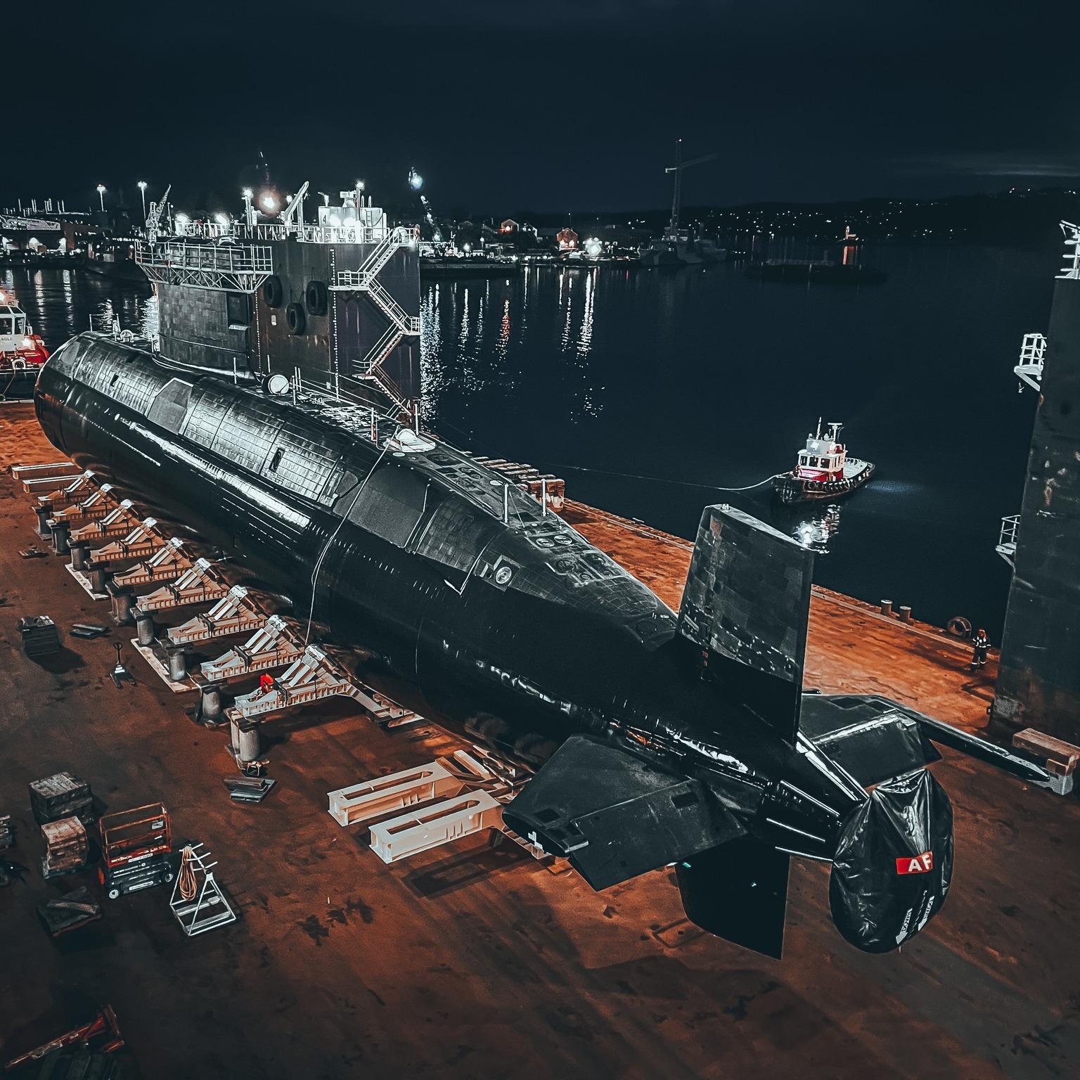 (CRN005 - CRN008) HMCS CORNER BROOK emerging from the hangar at Esquimalt Graving Dock in preparation for her return to sea - 2022 // Canadian Submarine Force facebook page